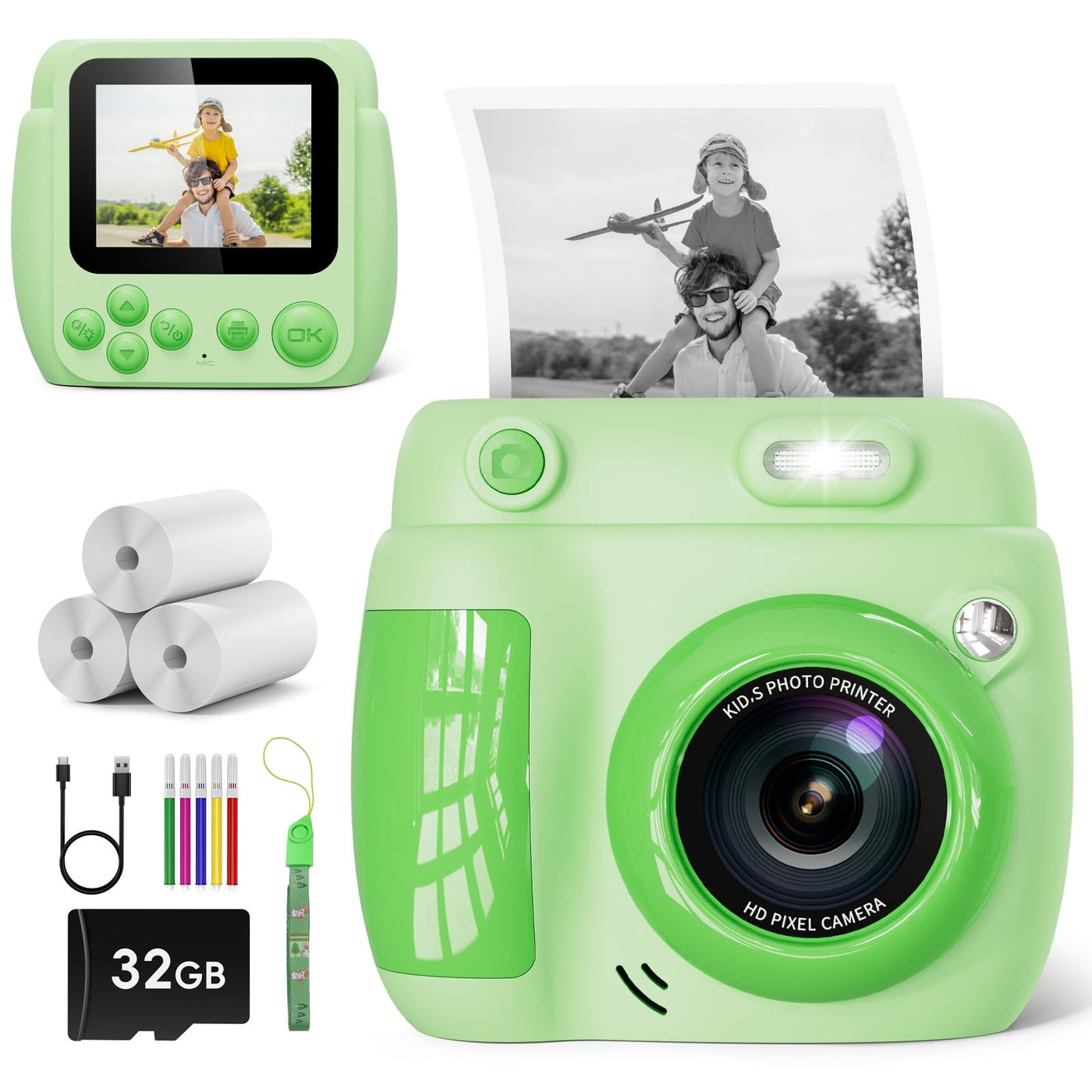 Kids Camera Instant Print - Christmas Birthday Gifts for Girls Boys Age 3-12, 1080P Video Digital Camera with 3 Rolls Printing P