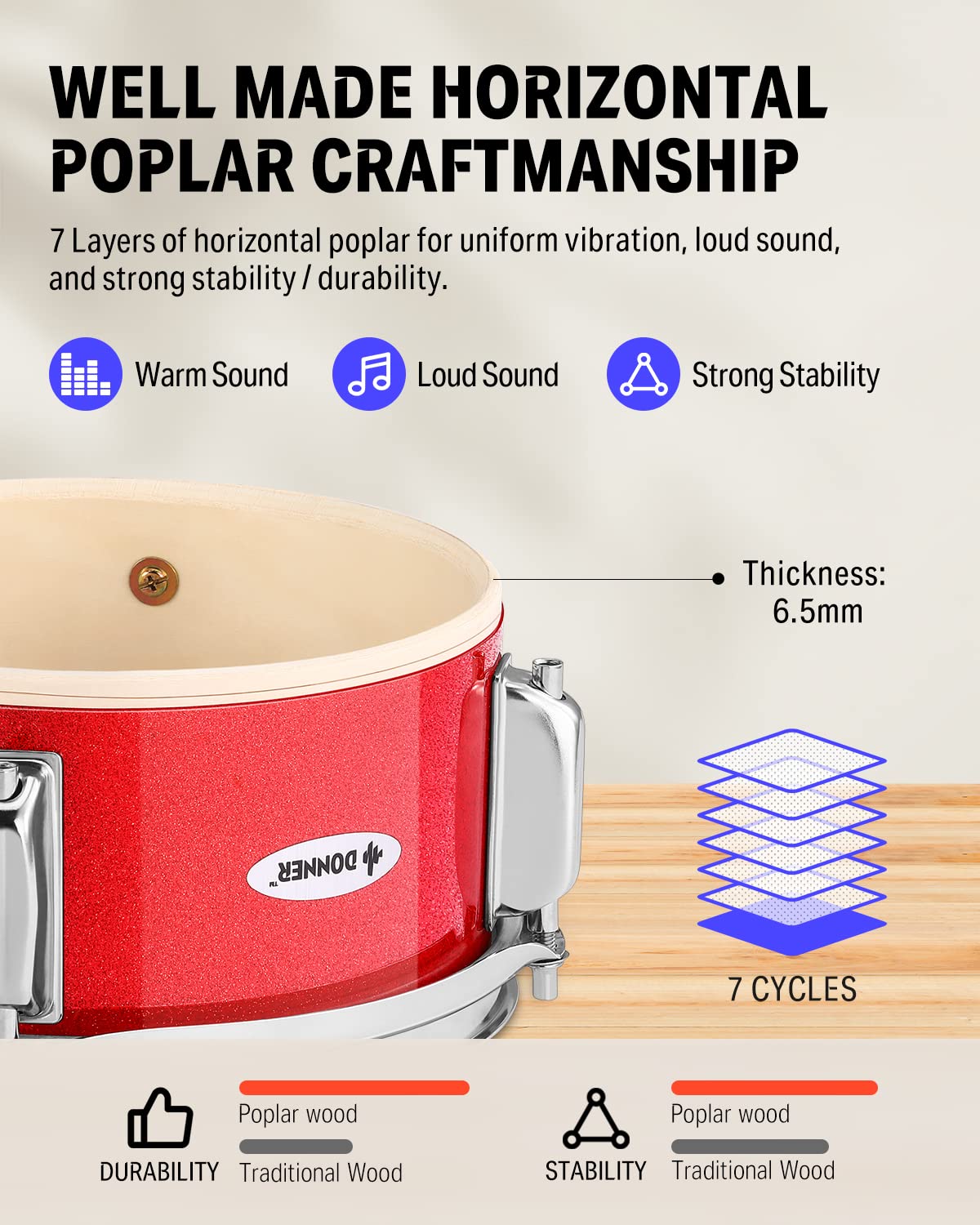 Kids Drum Sets Donner 5 Piece For Beginners,14 Inch Junior Drum Kit, With Adjustable Throne, Cymbal, Hi Hat, Pedal & Drumstick R