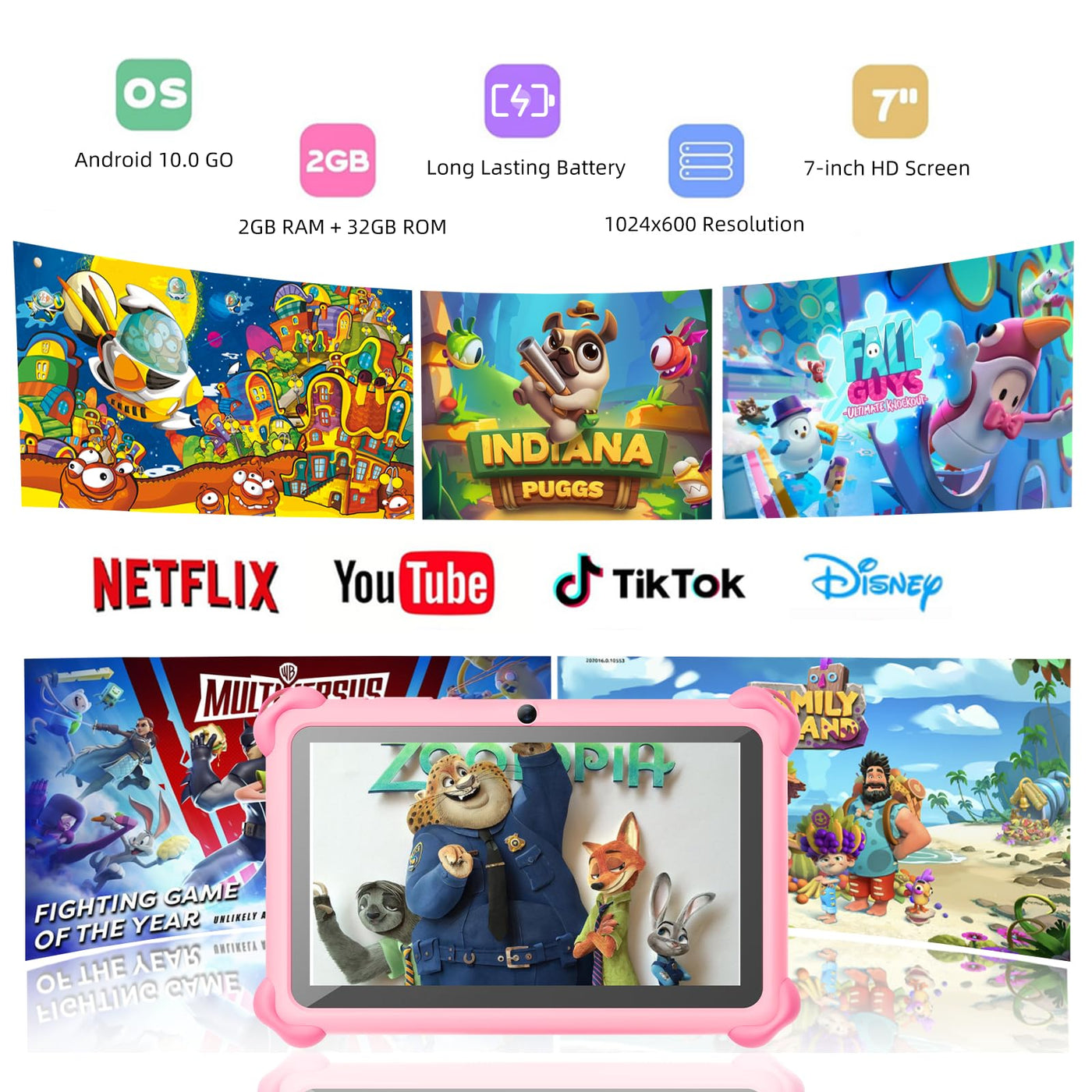 Package Includes: 1X 7 Inch Kids Tablet 1X Type C Cable 1X Charging Adapter 1X User Manual