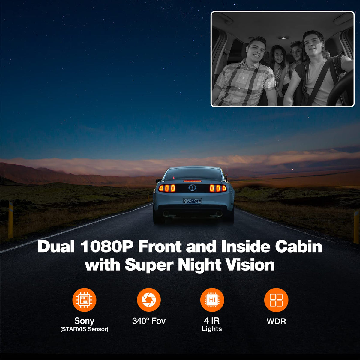 Dual Dash Cam Front And Inside Cabin, With Dual Sony Sensor Clear Night Vision, Extrmely Suitable For Uber, Lyft, Taxi Drivers And Family Who Has Baby