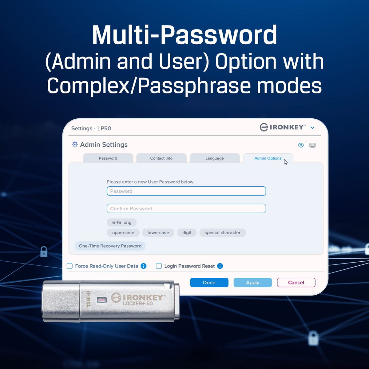 Kingston Ironkey Locker+ 50 64Gb Encrypted Usb Flash Drive | Usb 3.2 Gen 1 | Xts-Aes Protection & Taa Compliant | Multi-Password