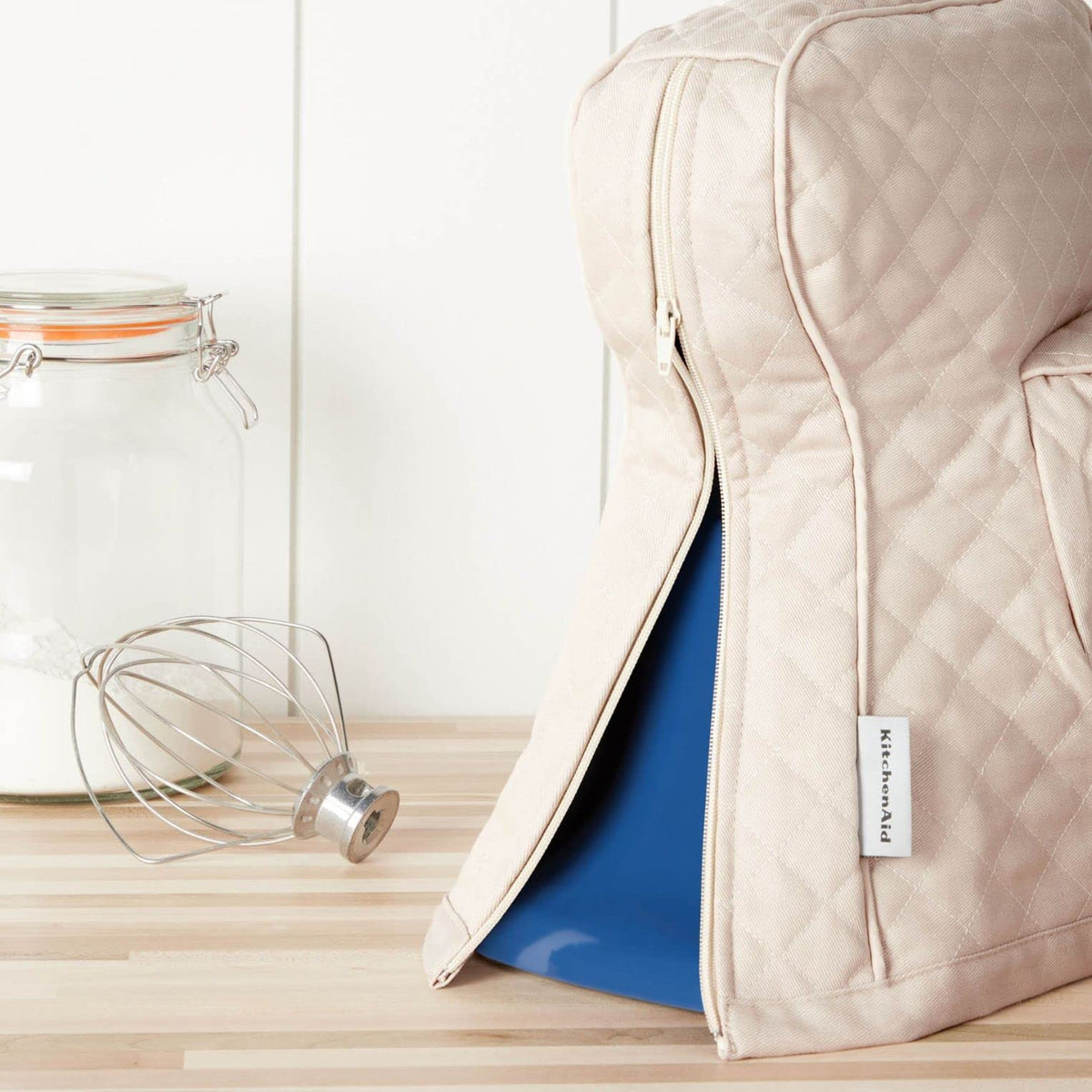 Q: What material is the KitchenAid mixer cover made of?A: The cover is made from 100% quilted cotton, ensuring durability and providing a stylish look while protecting your mixer.