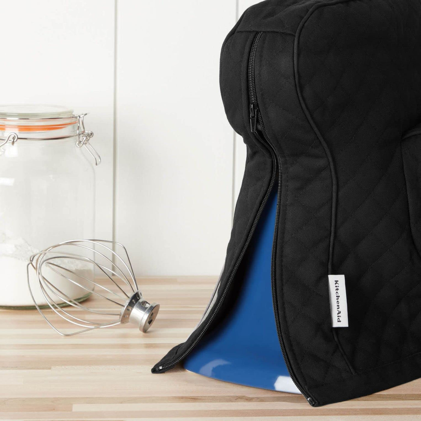 Kitchenaid Fitted Tilt Head Solid Stand Mixer Cover With Storage Pocket, Quilted 100% Cotton, Onyx Black, 14.4''X18''X10''