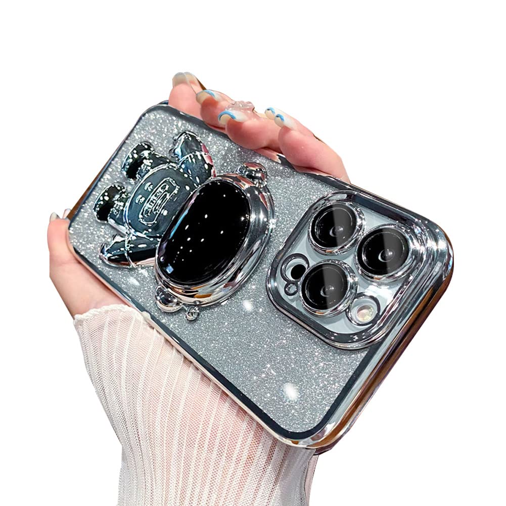 Kjarrow Cute Women Case For Iphone 14 Hidden Astronaut Kickstand, Bling Girly Case For Iphone 14 Kawaii Design, Protective Girls Case For Iphone 14 (Silver)