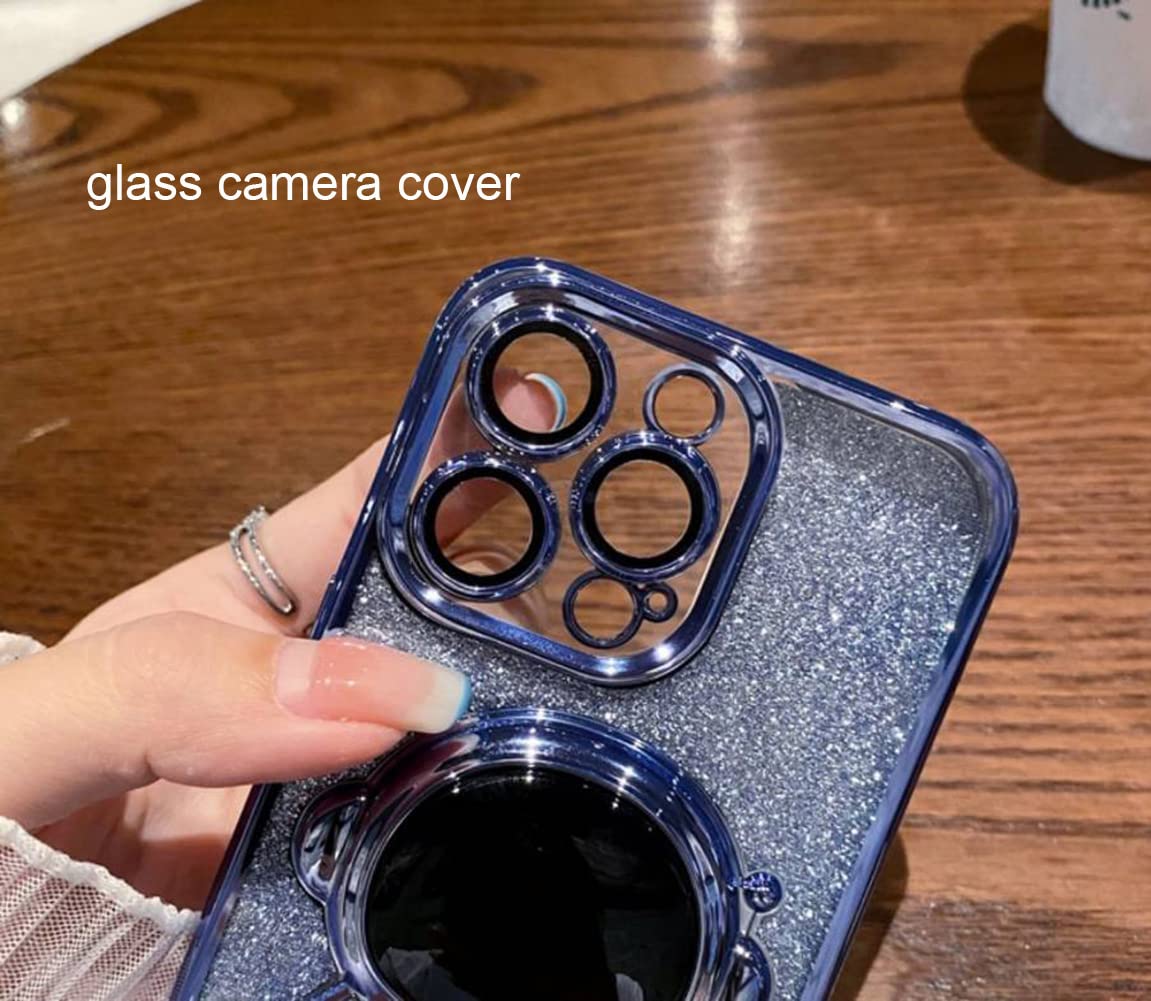 Kjarrow For Iphone 14 Sparkle Case For Women, Girly Case For Iphone 14 Cute Astronaut Stand Glitter Shiny Back, Plating Case Full Camera Cover For Iphone 14 (Blue)