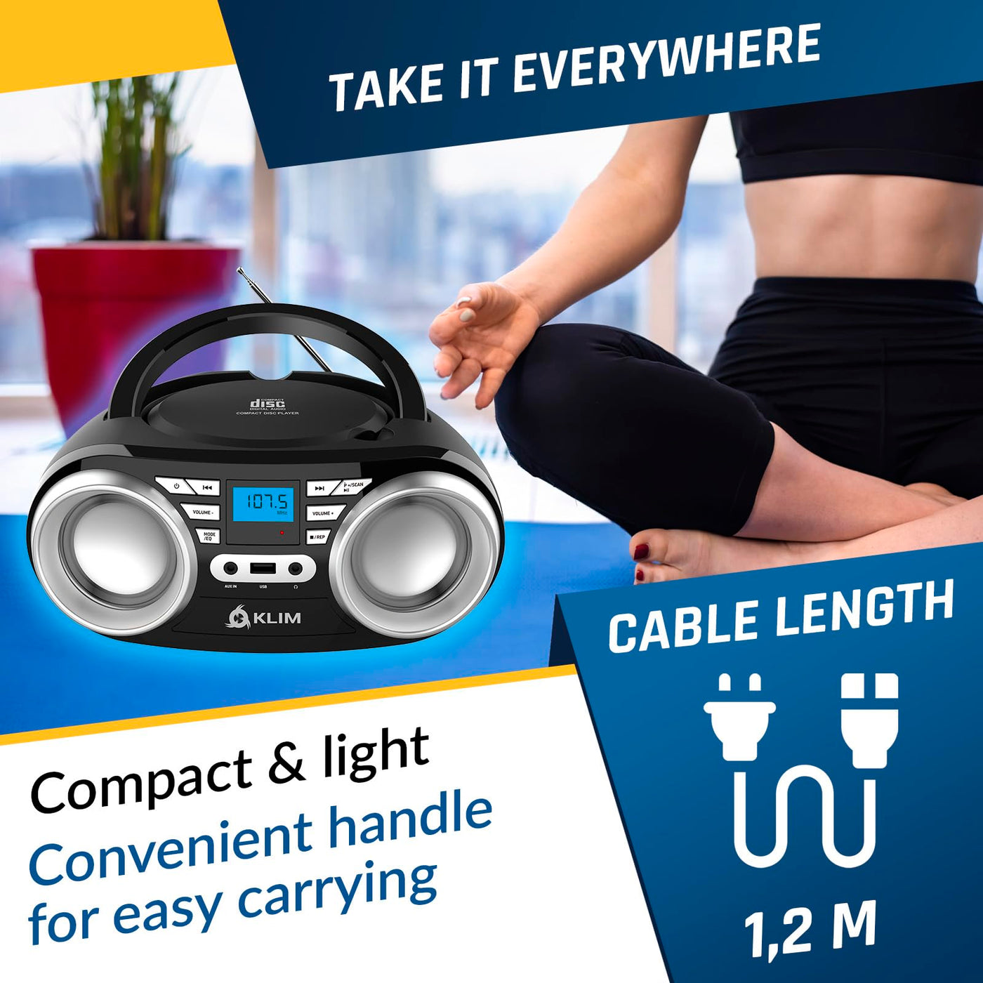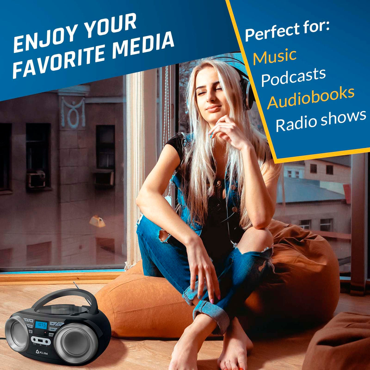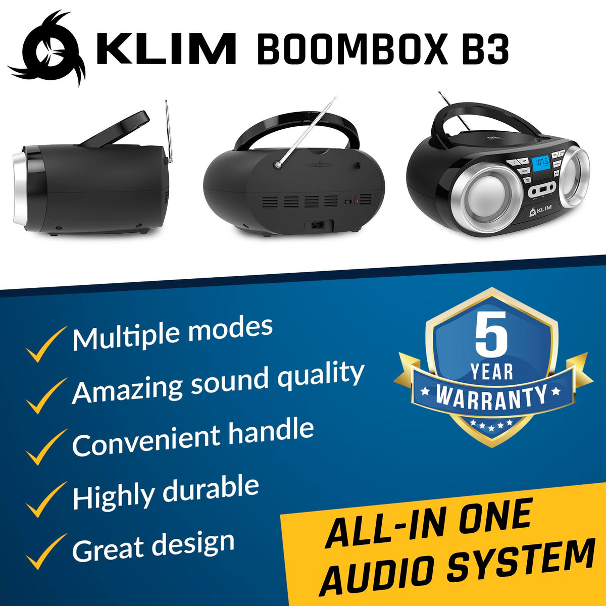 Klim B3 Portable Cd Player Boombox With Fm Radio, Bluetooth, Usb, Aux, And Fm Radio Cd Players For Home Dual Speakers, Eq So