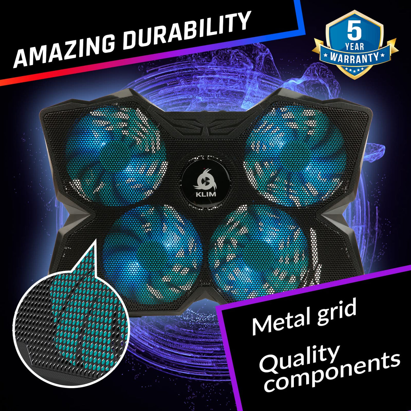 Q: Does the KLIM Wind Cooling Pad come with any warranty?A: Yes, the KLIM Wind Cooling Pad comes with a 5-year warranty, reflecting our confidence in the product's quality and durability, making it a risk-free investment for your laptop cooling needs.