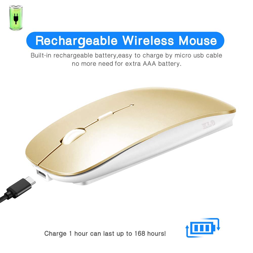 Klo Bluetooth Mouse For Macbook/Macbook Air/Pro/Ipad, Wireless Mouse For Laptop/Notebook/Pc/Ipad/Chromebook (Gold)