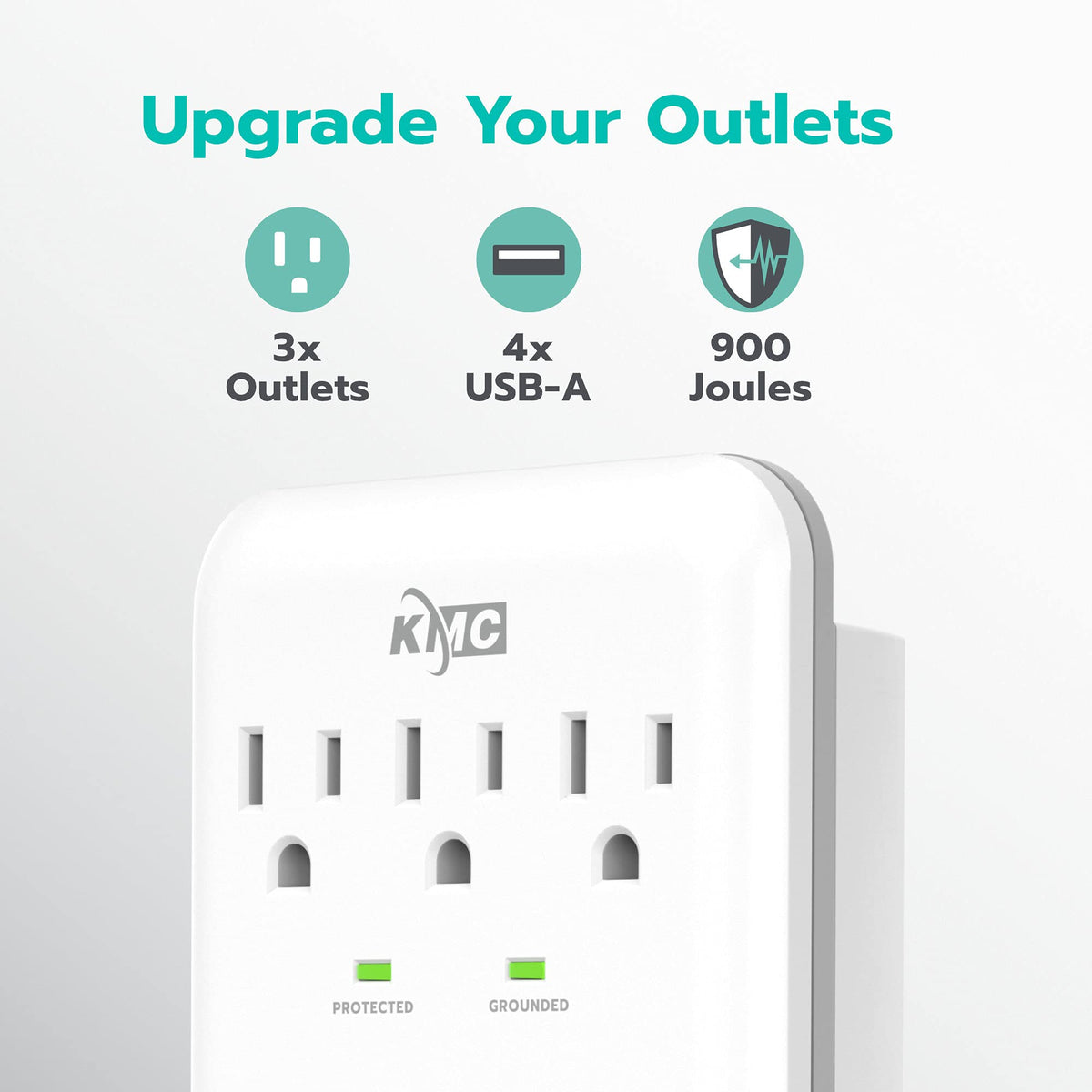1 * Kmc 3-Outlet Wall Mount Surge Protector With 4 Usb Charging Ports