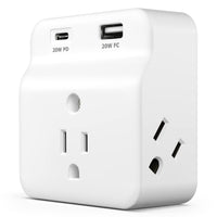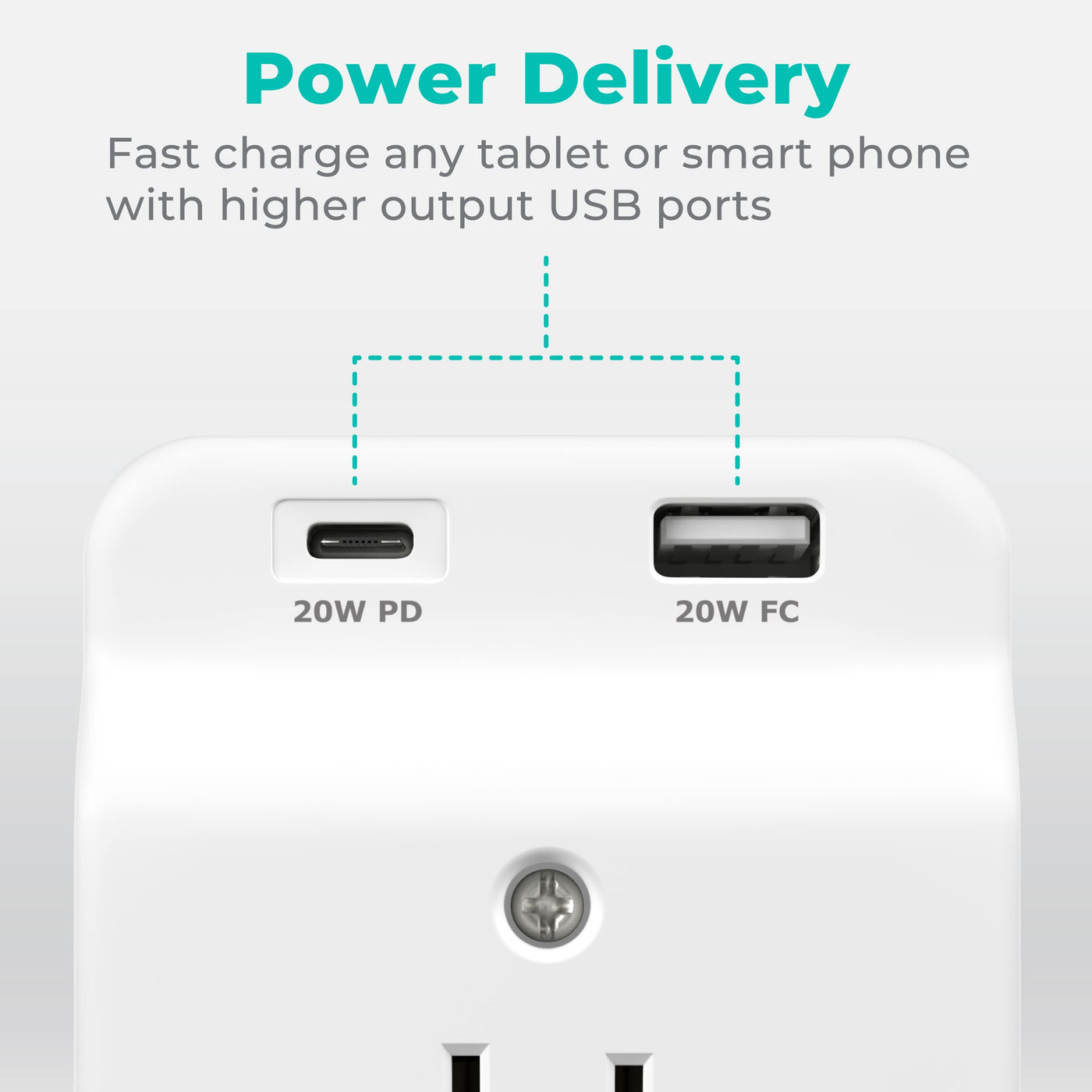 Kmc Usb C Pd Surge Protector 3 Outlet Wall Tap, Usb C Power Delivery Charger And Usb A Fast Charging Port, 500J Surge Protection, Wall Mountable Outlet Adapter For Home, Office, Dorm Essentials, White