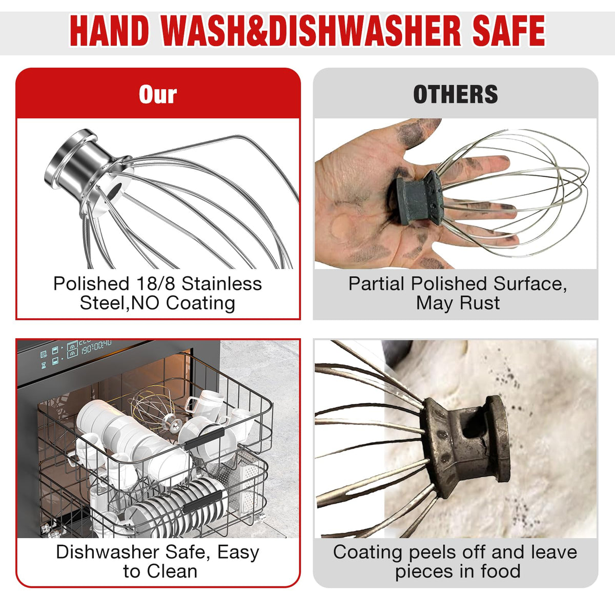 Kn256 Stainless Steel 6-Wire Whip Attachment For Kitchenaid Bowl-Lift Mixer 6 Quart Bowl, Stainless Steel Whisk Replacement For Kitchen Aid Mixer, Dishwasher Safe, Egg Heavy Cream Beater.