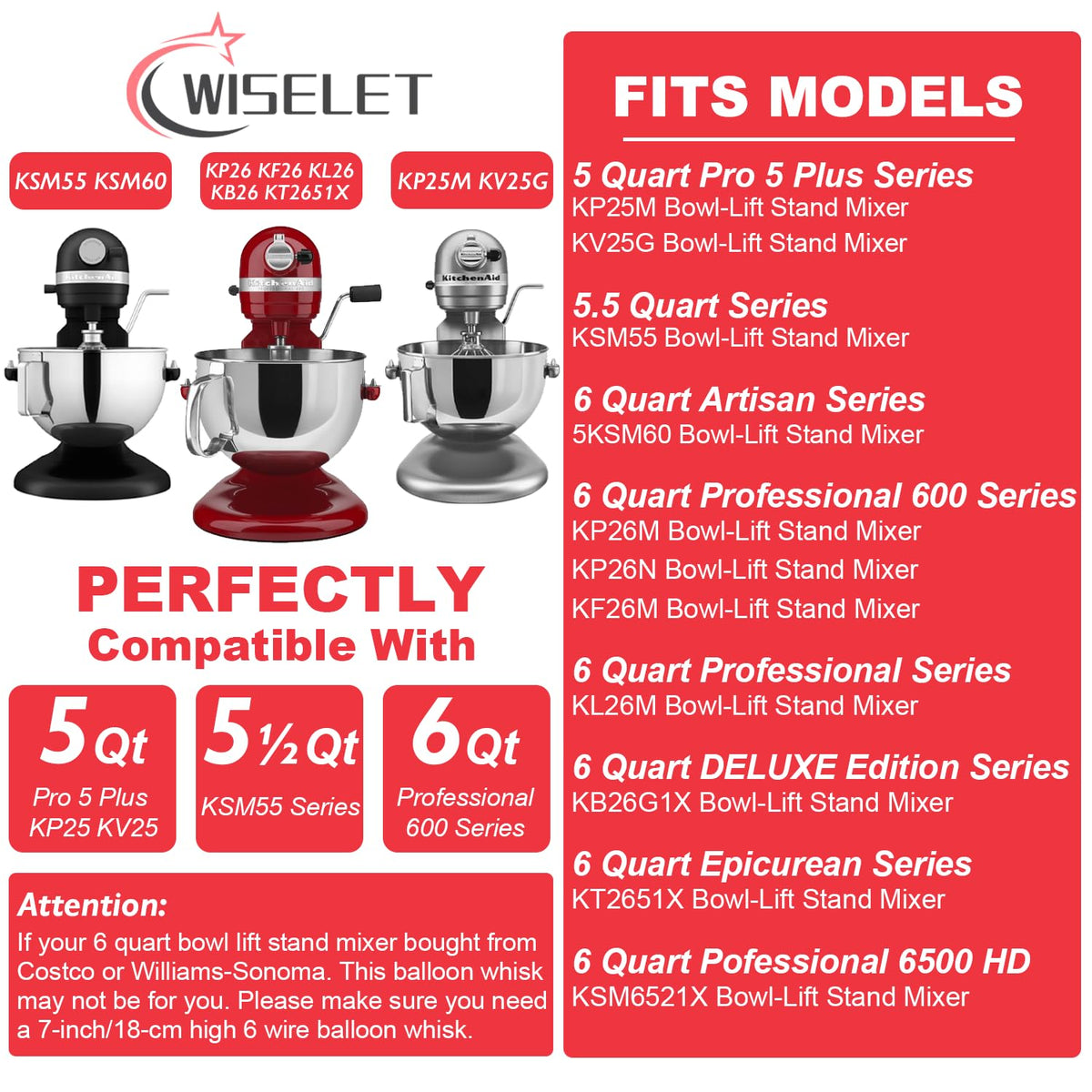 Compatibility: Professional 6 & 600 Bowl Lift Stand Mixers. Features:Stainless Steel Wires Whip The Whisk Consists Of Six Wires Which Can Quickly Incorporates Air Into Ingredients For Fluffy Whipped Cream And Perfect Boiled Frostings And Cakes With Whipped Egg Whites. High Quality: Cooking Utensil Whisk Set Is Made Of High Quality Durable Stainless Steel, Provides Maxiumum Volume For Mixtures Needing Air. Precise Compatibility : For 6 Wire Whip For : Kd2661X, Kp2671X, Kp26M1X, Kp26M8X, Kb26G1X, Kl26M8X, Kt2651X, Kp26N9X, 6 Wire Whip 6 Qt For Part Number: Kn256Ww. Stainless Steel Egg Cream Stirrer, Heavy Cream Beater, Cakes Mayonnaise Whisk, Flour Cake Balloon Whisk. Notice:Dishwasher Safe The Whole Whisk Is Made From Premier Stainless Steel, Which Is Rustproof And Corrosion Resis.