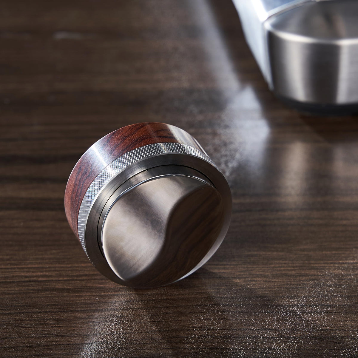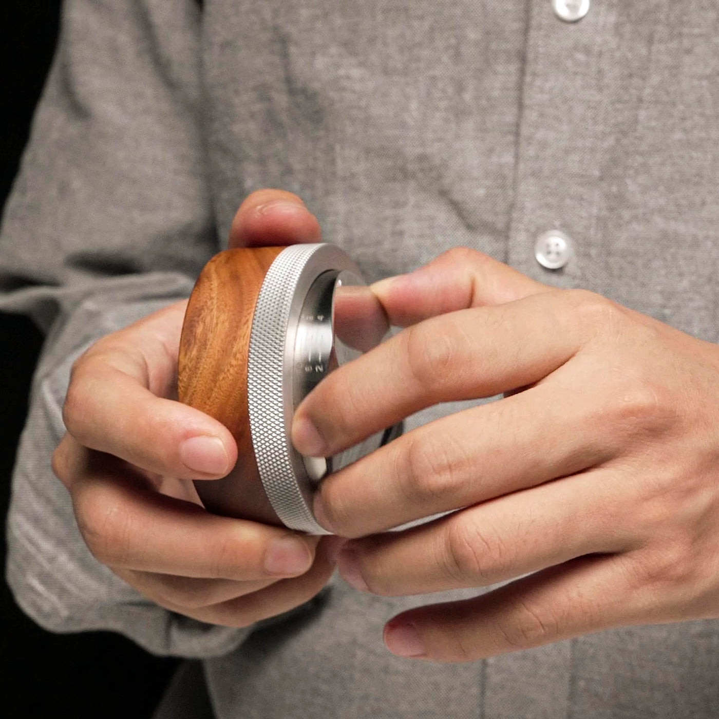 Q: What materials are used in the Knodos Espresso Distribution Tool?A: The Knodos Espresso Distribution Tool is crafted from high-quality 18/8 stainless steel, providing durability and a sleek finish. It also features an ergonomic rosewood handle that adds both aesthetic appeal and comfort during use.