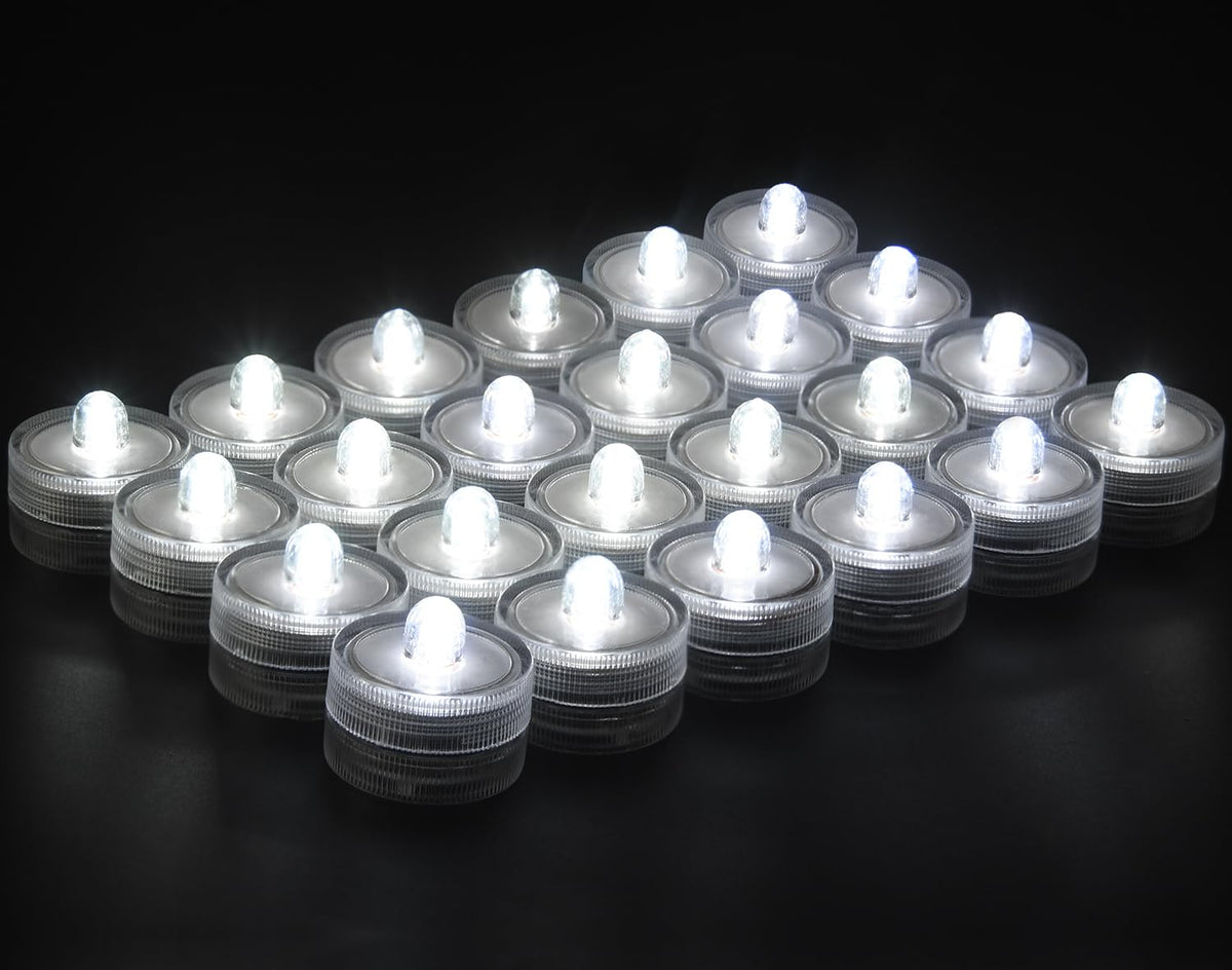 Koaby 24 Pack Submersible Led Lights, Waterproof Flameless Submersible Lights For Decor (Warm White Light, 24 Pack)