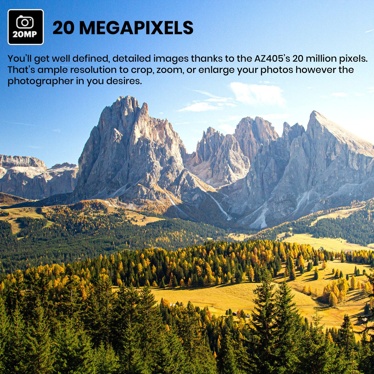 The Pixpro Az405 Digital Camera From Kodak Is Distinguished By A Long-Reaching 40X Zoom Along With Versatile Recording Capabilities. A 20Mp Ccd Sensor Enables Recording High-Resolution Stills And Hd 720P Video, As Well As An Expandable Sensitivity Range From Iso 80-3200 For Working In A Variety Of Lighting Conditions. The Expansive Zoom Covers A 24-960Mm Equivalent Focal Length Range For Working With Subjects Both Near And Far, And Optical Image Stabilization Helps To Minimize The Appearance Of Camera Shake For Sharper Handheld Shooting. The Camera Has A Rear 3.0'' 460K-Dot Lcd Monitor And Is Conveniently Powered By Four Aa Batteries.