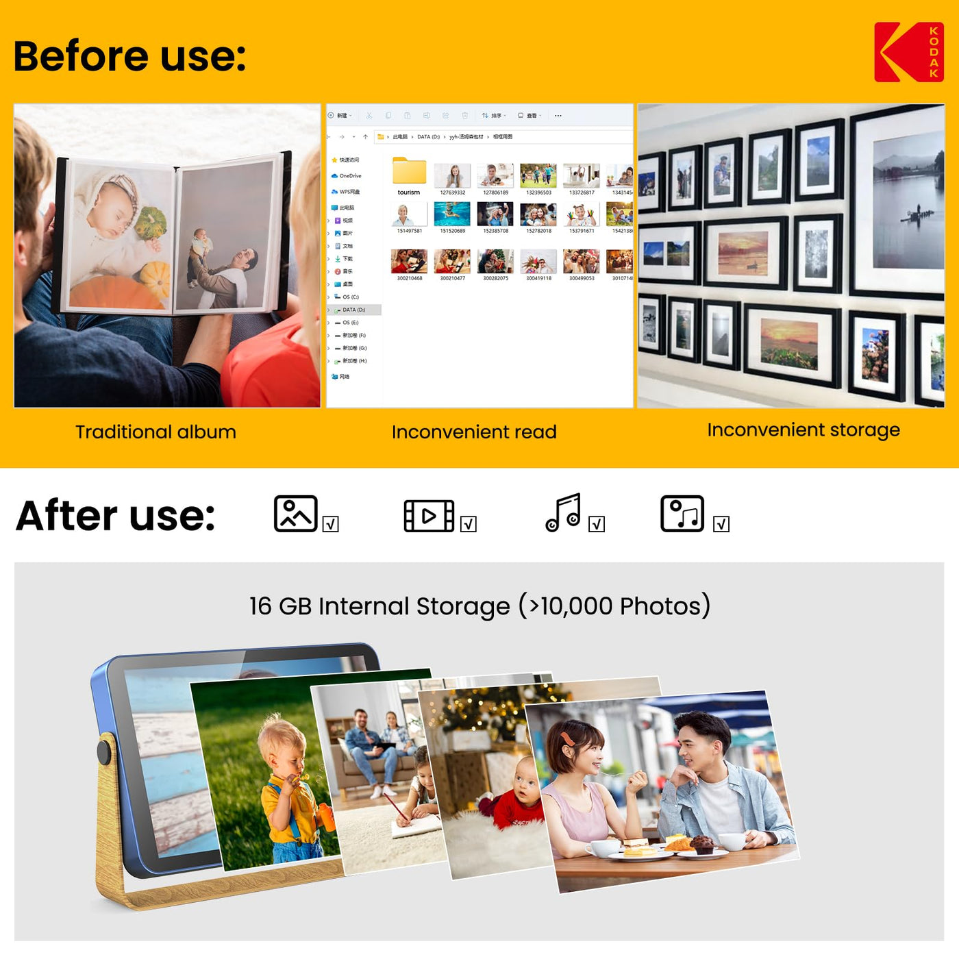 Kodak Wifi Digital Picture Frame 10.1 Inch With 16Gb Built In Memory,4000Mah Battery,1280 * 800 Touch Screen Cloud 2.4Ghz Wifi,