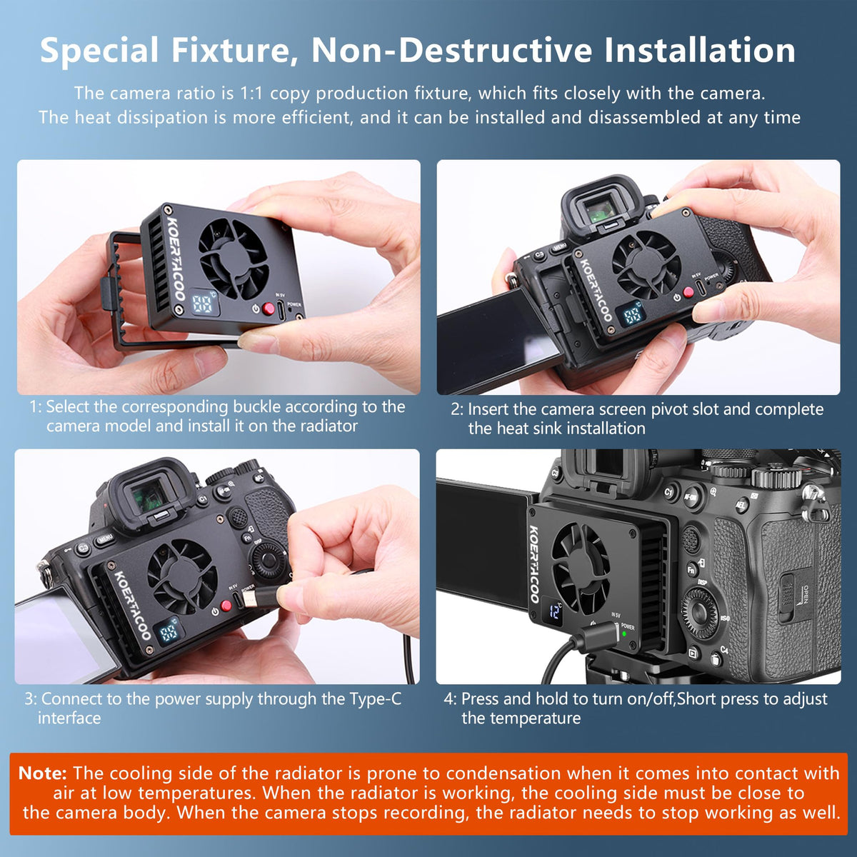 The Koertacoo Camera External Cooling System Is Designed For Video Recording And Live Streaming, Cooling The Camera And Preventing It From Shutting Down Due To Overheating. Meet The Needs Of The Camera For Long-Term Recording And Improve Work Efficiency.