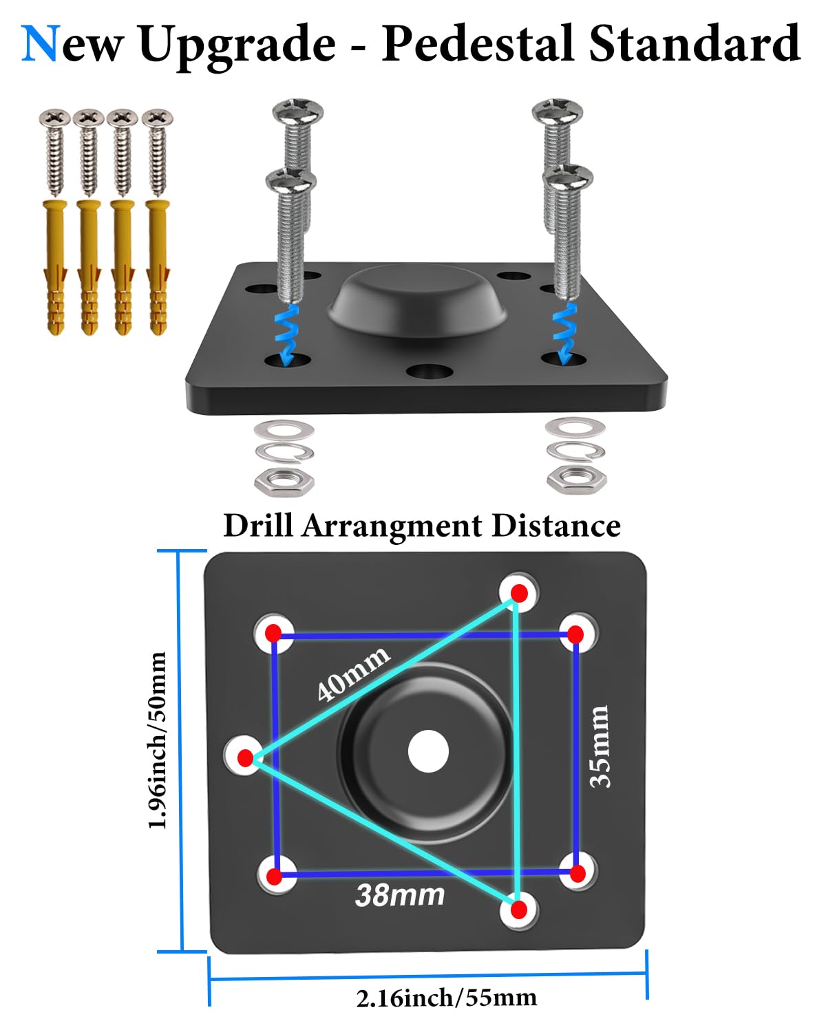 Drill Base Tablet Car Mount , 360Adjustable Ipad Dash Mount For 4.7'' - 12.9'' Tablets For Car/Truck/Van/Boat/Wall/Desk,Compatible With Ipad Mini/Pro 12.9, Iphone, Etc.