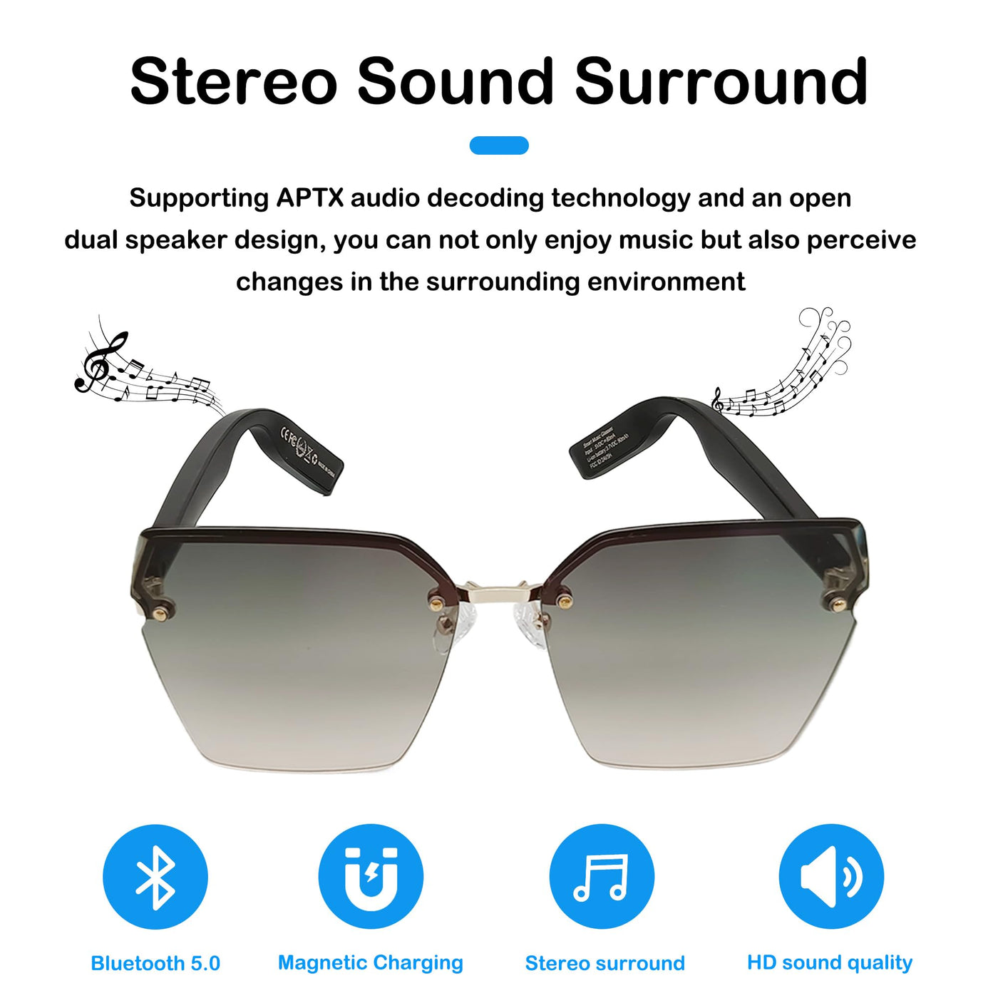 Konleya Smart Glasses, Bluetooth Sunglasses With Frameless Gradient Lens, Audio Glasses Sunglasses Music Bluetooth 5.0 With Voic