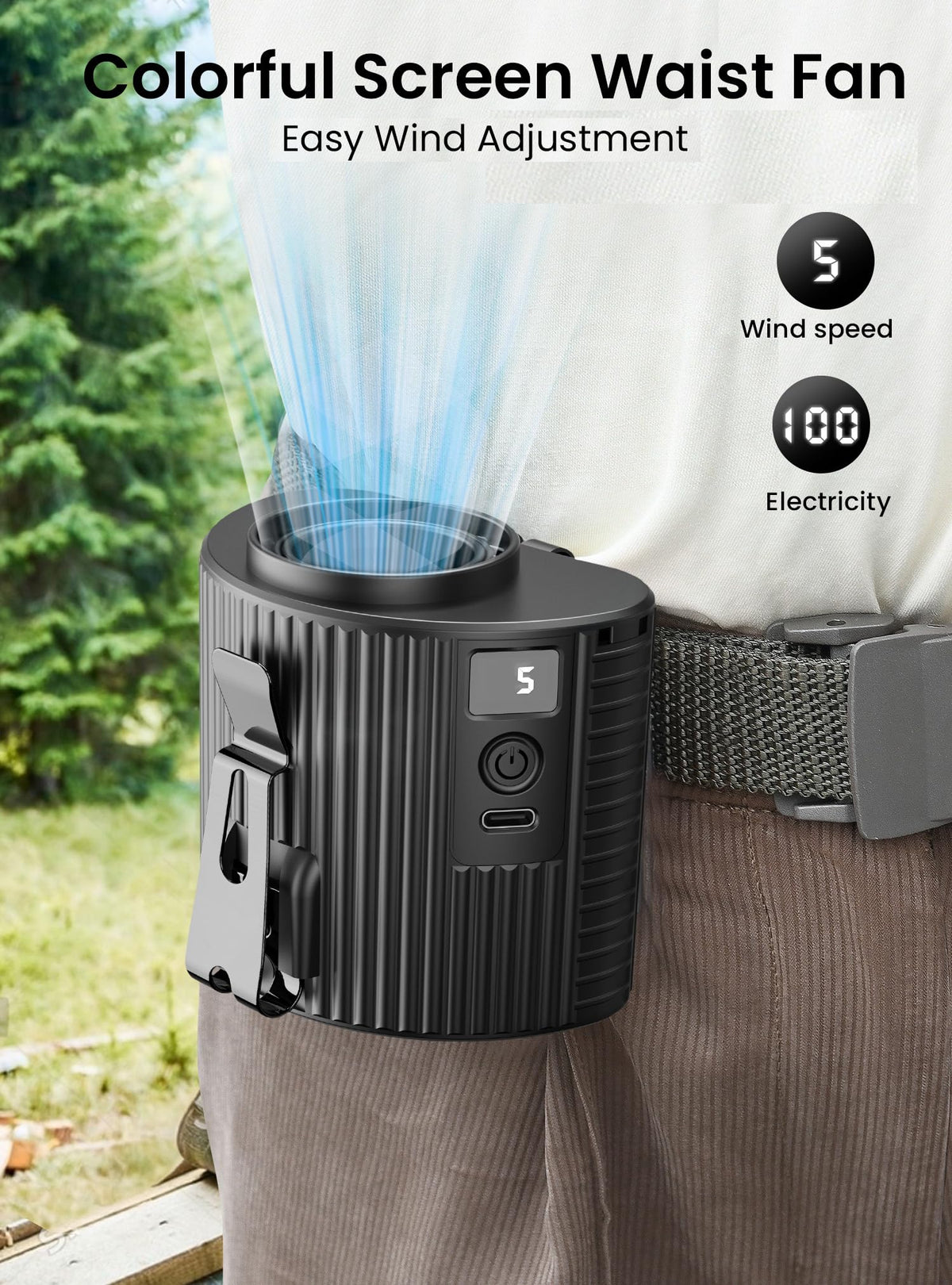 Q: Is the Koonie Mini Waist Fan suitable for outdoor activities?A: Yes, the Koonie Mini Waist Fan is designed for both indoor and outdoor use. Its wearable belt design allows you to keep your hands free while enjoying a powerful breeze during outdoor activities, sports, or work in hot environments.