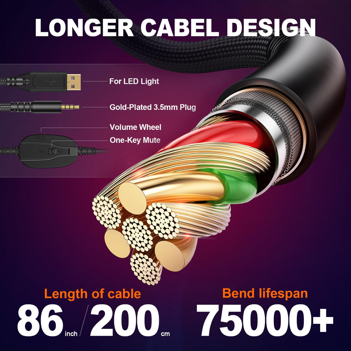 Krysenix Pg2 Gaming Headset For Ps4/Ps5/Pc/Xbox One, Noise Canceling Headset With Ai Stereo Microphone Sound, Computer Headset With 3.5Mm Jack & Rgb Light
