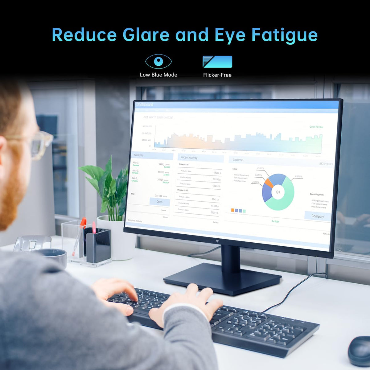 Comfortable Viewing: Equipped with low blue light mode and flicker-free technology, this monitor significantly reduces eye fatigue, making long hours of use comfortable. The 100x100mm VESA compatibility allows for easy wall mounting, while the -5° to -15° tilt adjustment helps you find the perfect viewing angle.