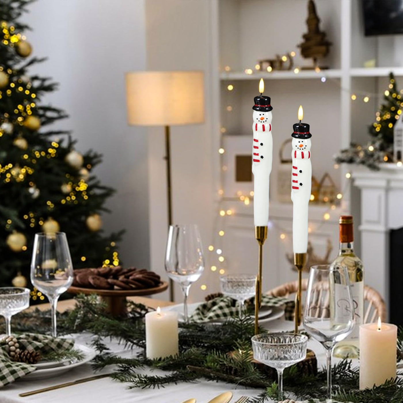 Kunswenn Christmas Taper Candles, Led Flameless Taper Candles With Timer, 2 Pcs Christmas Snowman Flameless Candlesticks With 3D