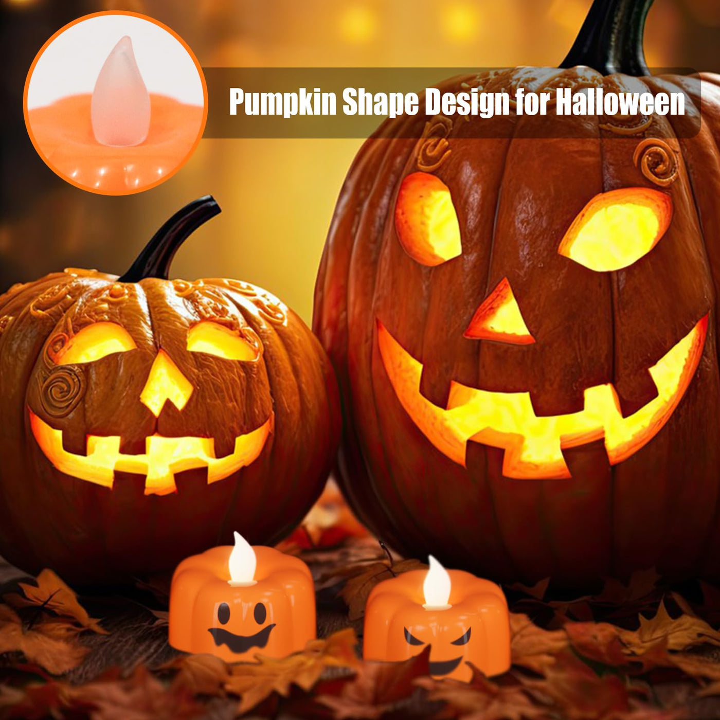 Kunswenn Tea Light Candles Battery Operated With 6H Timer, 6 Pack Halloween Pumpkin Decorations Led Tea Light Candles For Fall Table Centerpieces