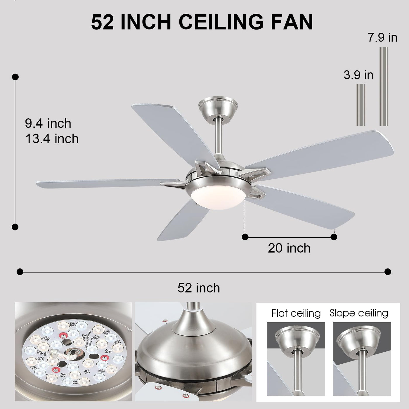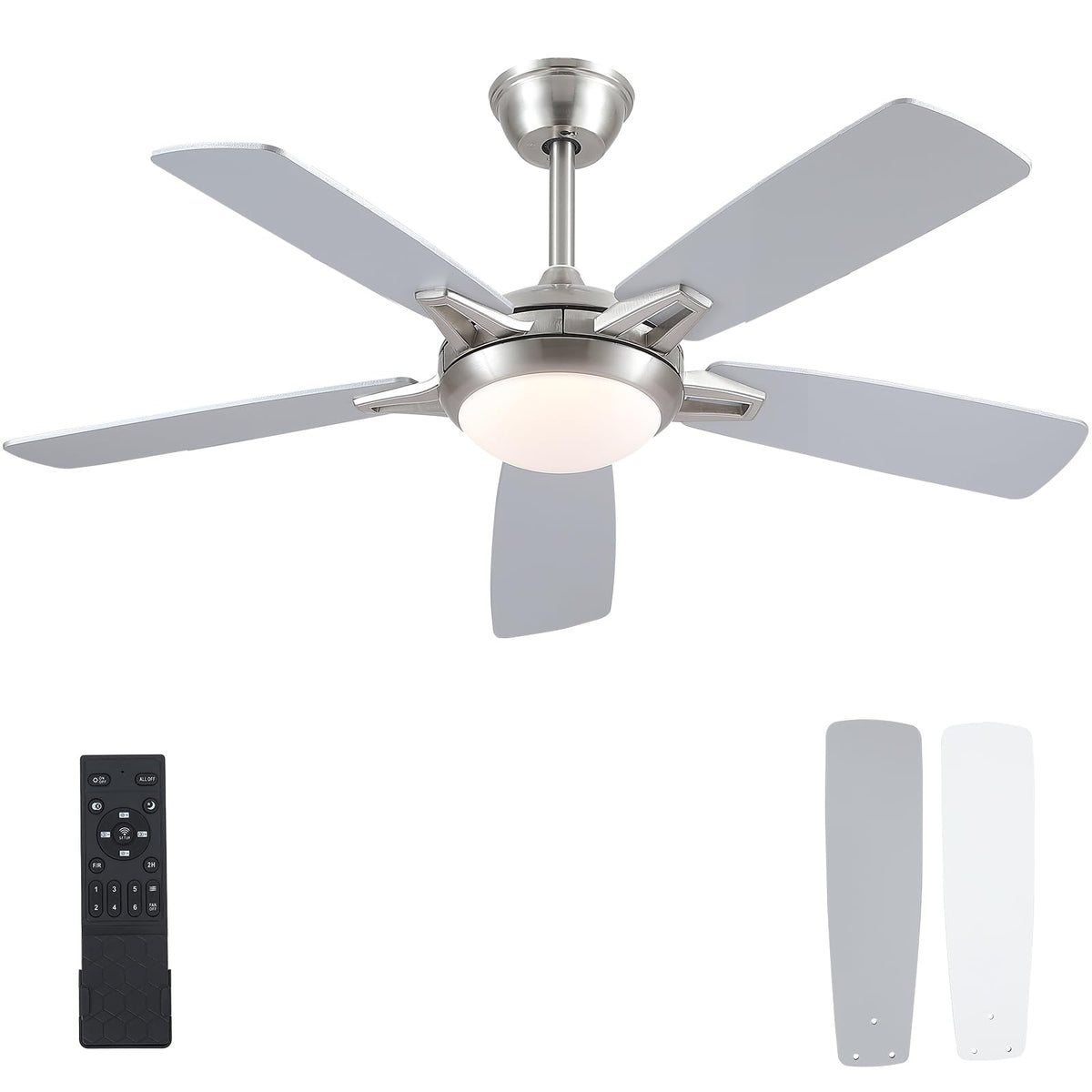 Kviflon 52 Inch Ceiling Fans With Lights And Remote, Modern Indoor Outdoor Ceiling Fan For Bedroom Living Room Patio Porch, 6 Sp