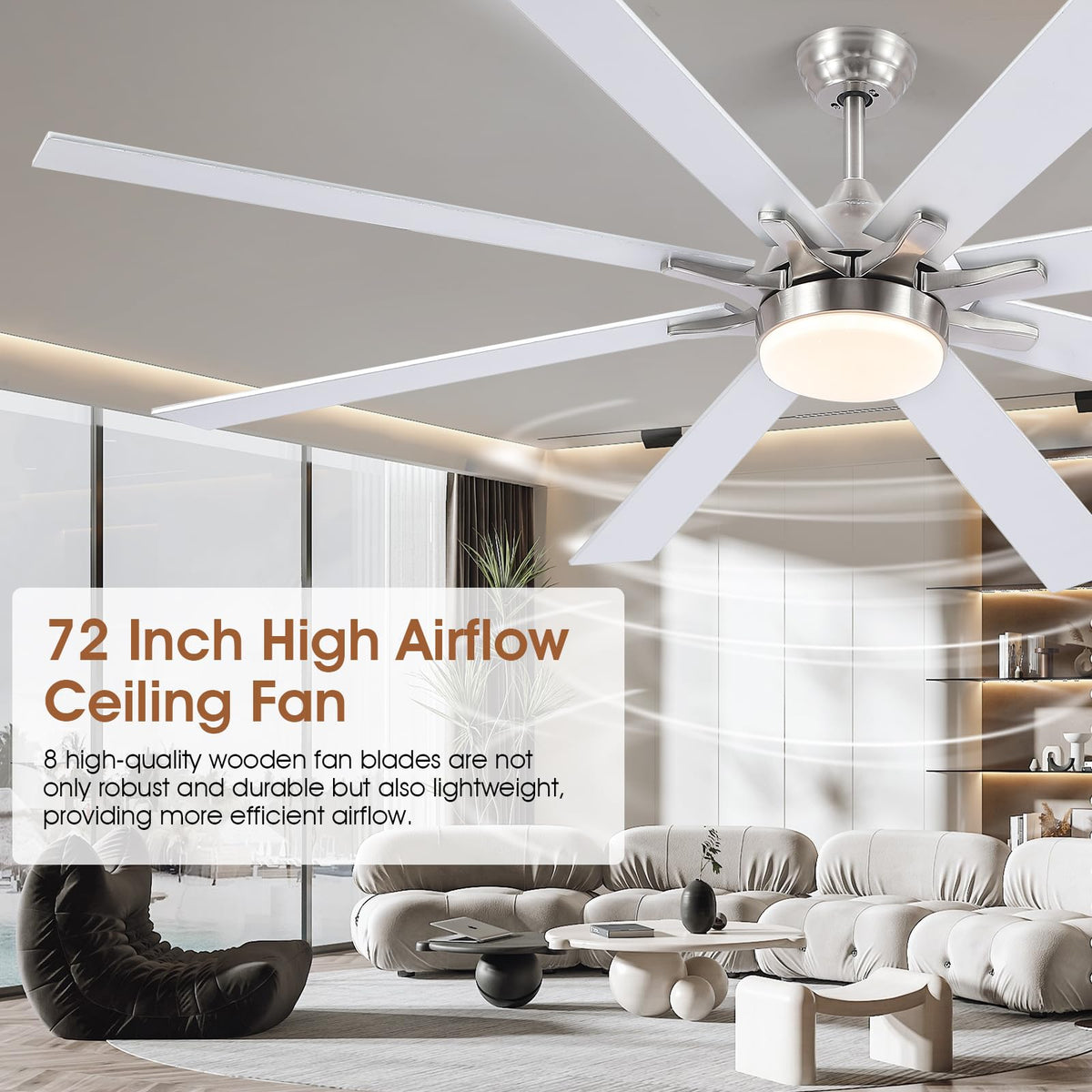 Kviflon 72 Inch Ceiling Fans With Lights And Remote, Modern Indoor Outdoor Large Ceiling Fan For Bedroom Living Room Patio Porch