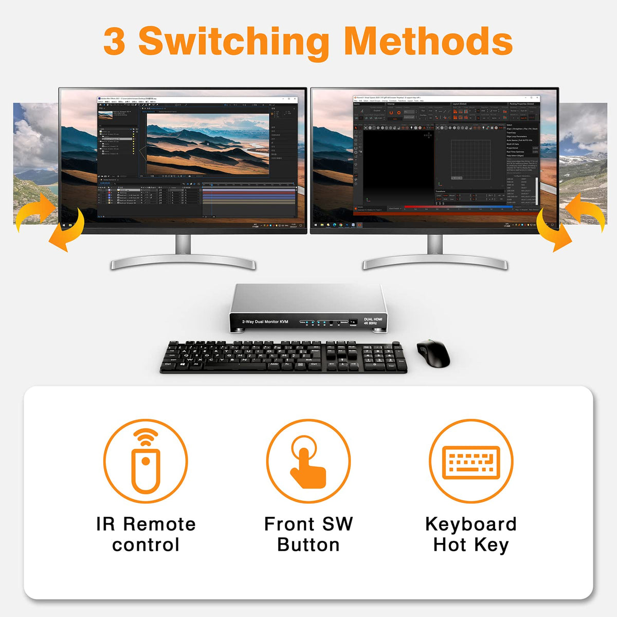 Digitnow Kvm Switch 2 Monitors 2 Computers This 2 Computers Kvm Switch Hdmi Allows You To Share One Set Of Keyboard And Mouse, Two Video Monitors With Two Pcs. Features: 1. Each Pc Must Make Two Video Connections To The Kvm Via A Docking Station Or Direct From The Computer. 2. Does Not Require Software Or Drivers And Works With Windows, Macos, Unix/Linux, Raspberry Pi, Etc. 3. Hdmi 2.0 Supports 4K (3840 X 2160@60Hz) Resolution. 4. 3 Ways To Switch: Hotkeys, Front Push Button, Or Remote Control. 5. Keyboard Passthrough Mode Allows For Better Compatibility Plus Multimedia Key Functions. 6. Hotkey Triggers Assignable To Either Scroll Lock Or Right-Ctrl. 7. Usb Sharing Works With Printers, Jump Drives, Usb Headsets And Webcams For Teleconferencing. 8. Digitnow! Local Service Team, 3-Year Warranty & Lifetime Technical Support. If You Have Any Help, Our Professional Customer Service Team Is Always Here To Support You.