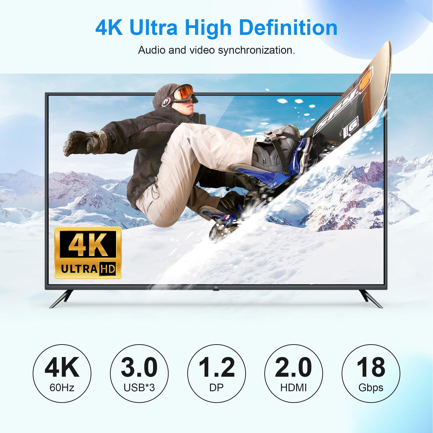 4K@60Hz&Nbsp;Usb 3.0 Triple Monitor 2 Hdmi + Displayport Kvm Switch For 2&Nbsp;Computers Sharing 3 Monitor And 3 Usb 3.0 Ports, Audio &Amp; Microphone &Nbsp; Features: &Nbsp; 1. Triple Monitor Kvm Switch&Nbsp;Allows 2&Nbsp;Computers/Laptops Share One Set Of Keyboard, Mouse, And 3 Monitors (2&Nbsp;Hdmi + 1&Nbsp;Displayport) &Nbsp; 2. Support Hdmi 2.0&Nbsp;And Dp 1.2&Nbsp;Standards And Downward Compatible. 3 Monitors Output Support Up To 4K@60Hz For Extended,Mirrored Or Spliced Display(Depends On Your Computer'S Graphics Card.); &Nbsp; 3. 2 Switching Modes: Button Switch And Wired Remote. &Nbsp; 4. Kvm Switch With 3 Usb 3.0 Ports For Usb Devices, And With Extra Audio Microphone Output &Nbsp; 5. Plug And Play, Compatible With Windows, Linux, Mac, Unix, Ubuntu, Raspberry And Most Other Major Os &Nbsp; 6.&Nbsp;The Ports That Need To Plug In Hdmi/Displayport/Usb Cables Are All Hidden Behind The Triple Monitor Kvm&Nbsp;Switch, So The Desktop Doesn'T Get Cluttered, You Can Enjoy The Clean Work Space. &Nbsp; Installation Steps: 1. Insert The Dc/5V Adapter Into The Kvm ; 2. Plug The 2*Hdmi Cable And 1*Displayport Cable Into The Kvm Switch And Monitor;(Output) 3. Plug The Displayport Cable, Hdmi Cable, And Usb Cable Into The Kvm Switch And Your Computer/Laptop (Hdmi And Dp Cables Are Not Included)(Input) &Nbsp; Hdmi In 1A +Hdmi In 1B + Dp In 1C + Usb In 1=Pc1 &Nbsp; Hdmi In 2A + Hdmi&Nbsp;In 2B + Dp In 2C + Usb In 2=Pc2 &Nbsp; Please Check Whether Hdmi In 1A, Hdmi In 1B, Dp In 1C, And Usb In 1 Corresponding, And Whether Hdmi In 2A, Hdmi In 2B, Dp In 2C And Usb In 2 Are Corresponding. Mixed Insertion Is Not Supported. 4. Insert The Mouse And Keyboard Into The Kvm Switch &Nbsp; 5.&Nbsp;If Needed, You Can Connect A Microphone And Audio Port &Nbsp; Note: &Nbsp; 1. Most Of The Reasons Why Only One Video Output Works Is Because Of Incorrect Connection. Please Make Sure Each Pc Has(2&Nbsp;Hdmi +1&Nbsp;Dp+Usb Cable) Connect To The Kvm. 2. If The Input Usb3.0 Ports Are Not Connected Or Connected Incorrectly, The Output Usb Device Will Not Be Recognized. 3. Note: Hdmi And Dp Cables Are Not Included &Nbsp; &Nbsp; Ultra Hd 4K@60Hz Triple Monitor Kvm Switch Confirms To Hdmi 2.0&Nbsp;&Amp; Dp 1.2&Nbsp;Protocol, Supports A Maximum Resolution Of 4K@60Hz, And Is Compatible Downwards. Only When Both Your Computer Graphics Card, Monitor And Cable Support 4K@60Hz Then You Can Get 4K@60Hz Effect, So If You Want The Max Resolution You Have To Check Your Devices First. &Nbsp; &Nbsp; &Nbsp; 3 Display Modes Extended Display &Nbsp; Mirrored Display &Nbsp; Spliced Display &Nbsp; 1)Extended Mode Can Output Three&Nbsp;Different Screens And Mirror Mode Can Output Three&Nbsp;Identical Screens.&Nbsp;Note:If Your Graphics Card Has A Splicing Screen Function, You Can Use The Splicing Screen Mode. &Nbsp; 2)&Nbsp;The Requirement For This Kvm To Achieve A Triple-Screen Display Is That Each Pc You Connect To Has The Capability To Support A Triple-Screen Display. This Has Nothing To Do With Kvm. &Nbsp; Wired Remote Control Supports Wired Remote Switching For Easy Cable Management, You Can Switch Directly On The Desktop, Convenient For Your Life And Work &Nbsp; Switch By Panel Button Push-Button Design Allows For One-Touch Switching Using A Button On The Kvm Switch Box, Eliminating The Need To Plug And Unplug Cables Frequently, Saving Space And Time. &Nbsp; Led Indicator When Switching To Which Pc, The Led Will Tell You Whether Pc1 Or Pc2&Nbsp;Is Active. &Nbsp; Audio And Microphone Output 3 Monitors 2&Nbsp;Computers Kvm Comes With A 3.5Mm Audio Jack Port With A Dac Chip Inside, Which Can Be Inserted Into A 3-Segment 3.5Mm Earpiece Device, And A 3.5Mm Microphone Interface, Which Can Be Inserted Into A 3-Segment Microphone &Nbsp;