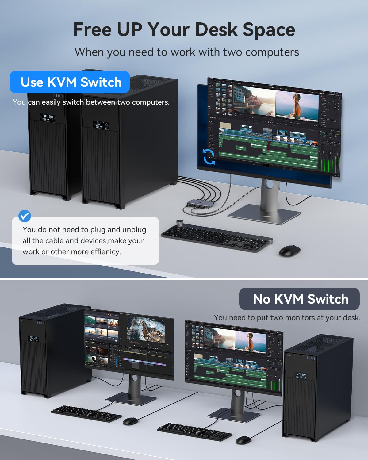 Kvm Switch, Ablewe Aluminum Kvm Switch Hdmi,Usb Switch For 2 Computers Sharing Mouse Keyboard Printer To One Hd Monitor, Support
