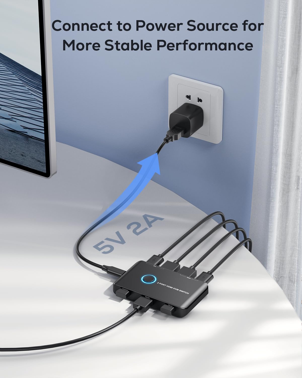 Package Included: Hdmi Kvm Switch *1 Hdmi Cable *1 Usb Cable *2 Usb C Power Cable *1User Manual *1