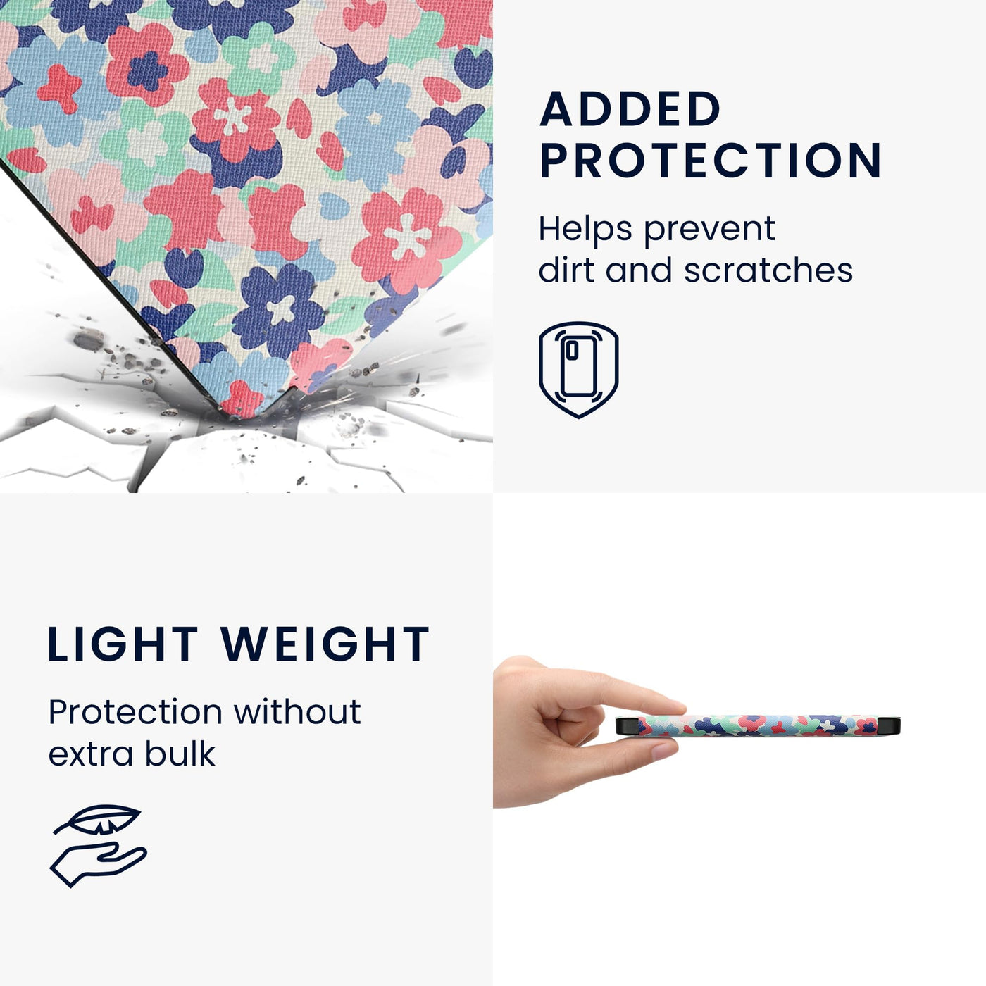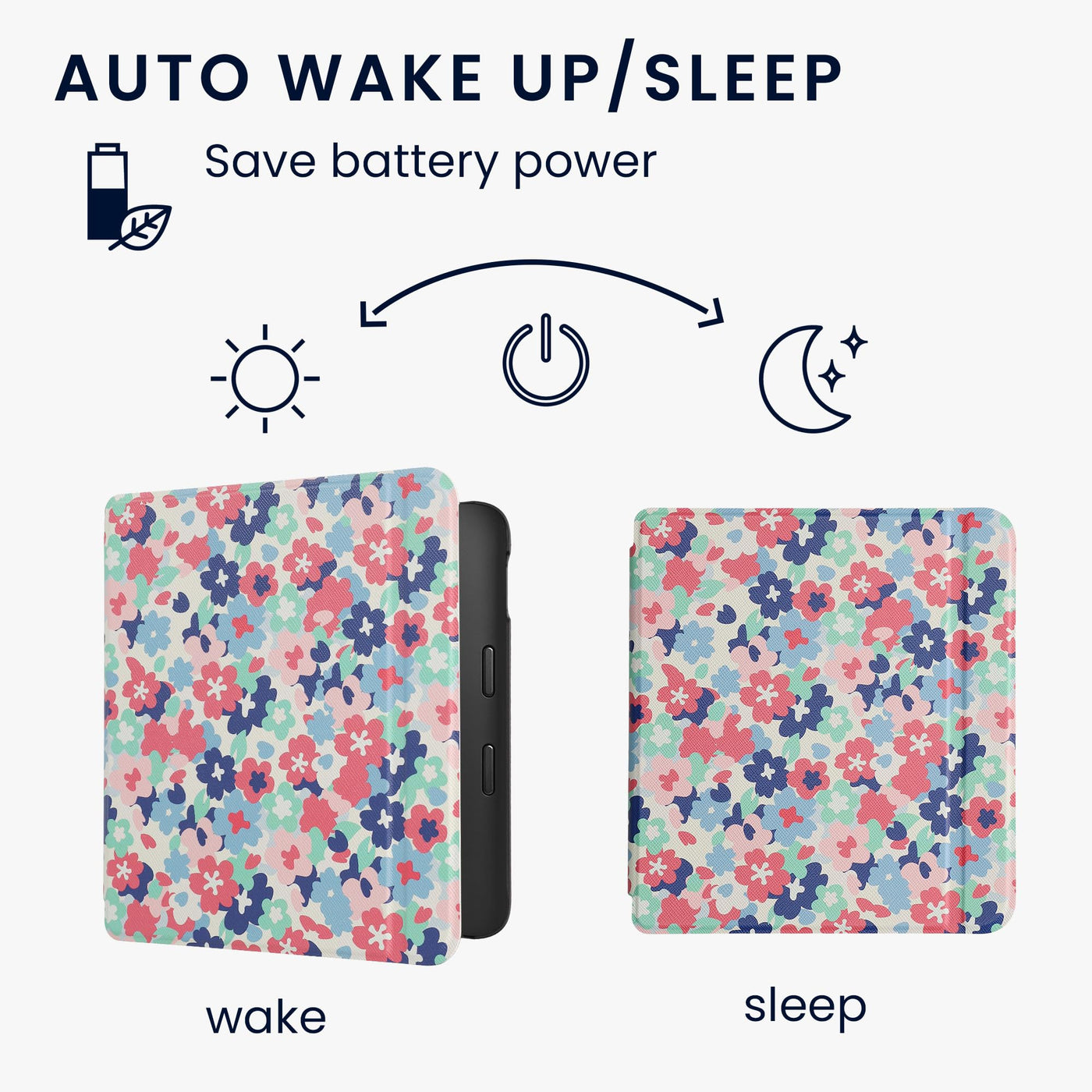 Kwmobile Case Compatible With Kobo Libra 2 Case Ereader Cover Pastel Flowers Red/Dusty Pink/Blue