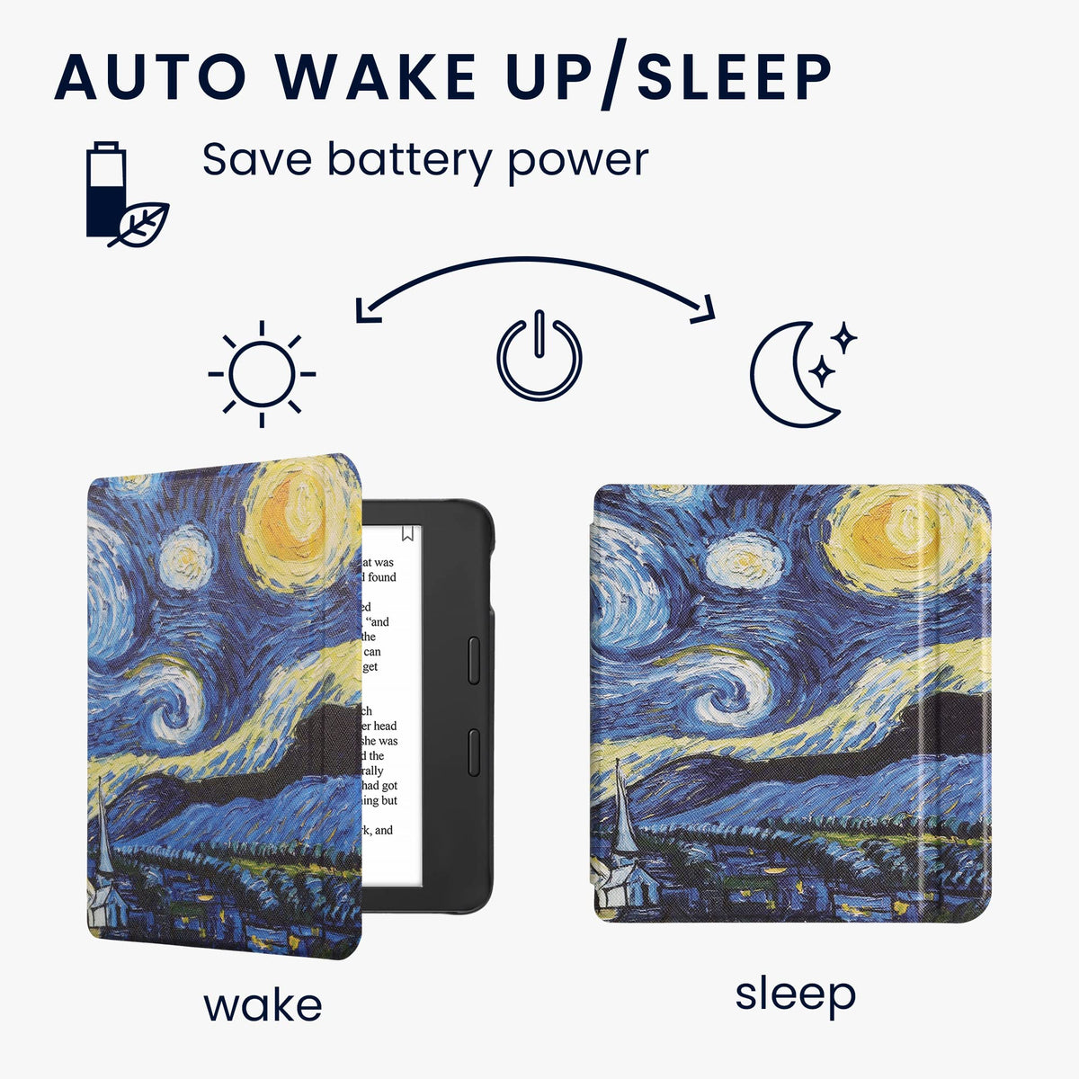 Kwmobile Case Compatible With Kobo Libra 2 Case Ereader Cover Starry Night Blue/Yellow