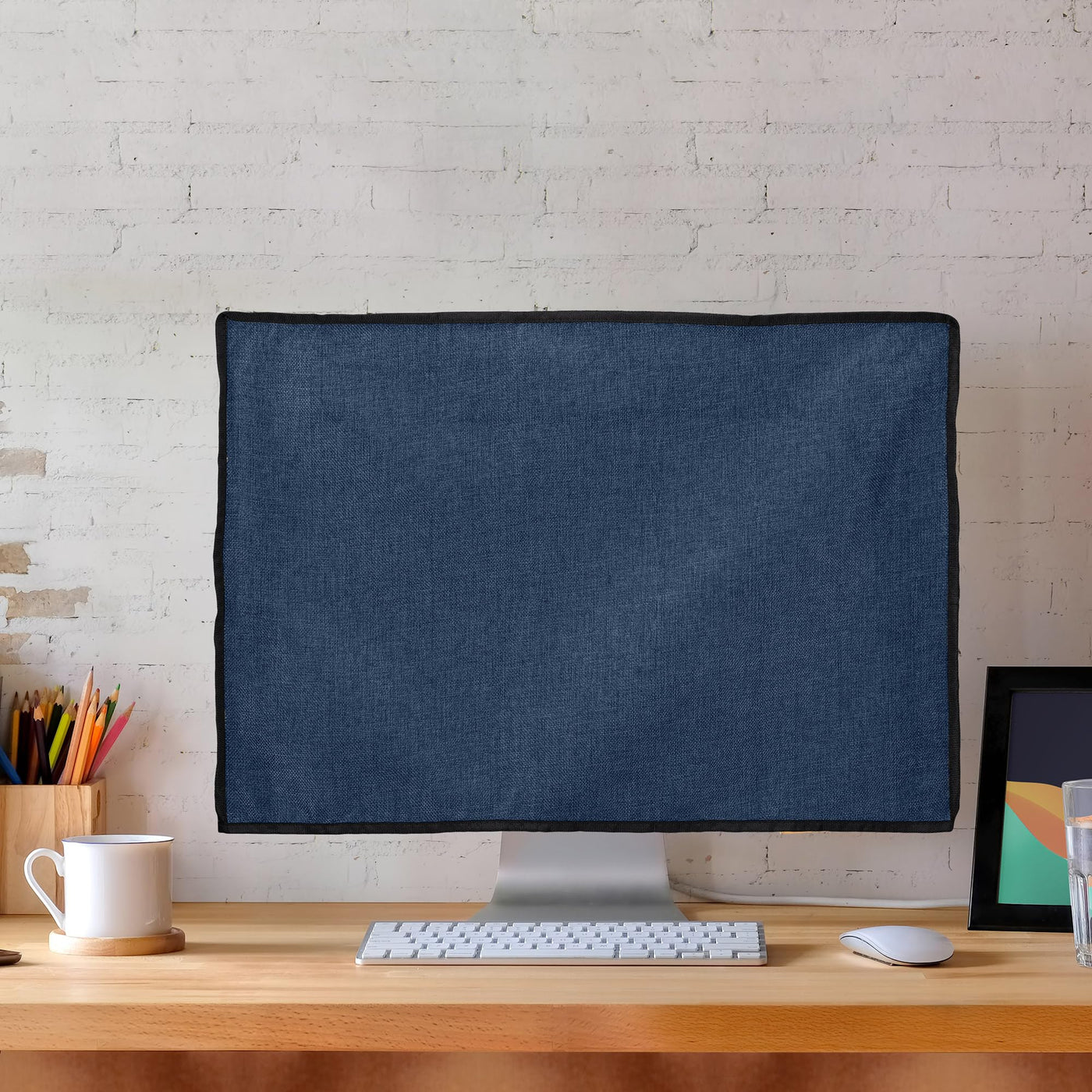 Kwmobile Dust Cover For 27 28'' Monitor Linen Monitor Display Protector Protect Your Computer Screen Blue Grey