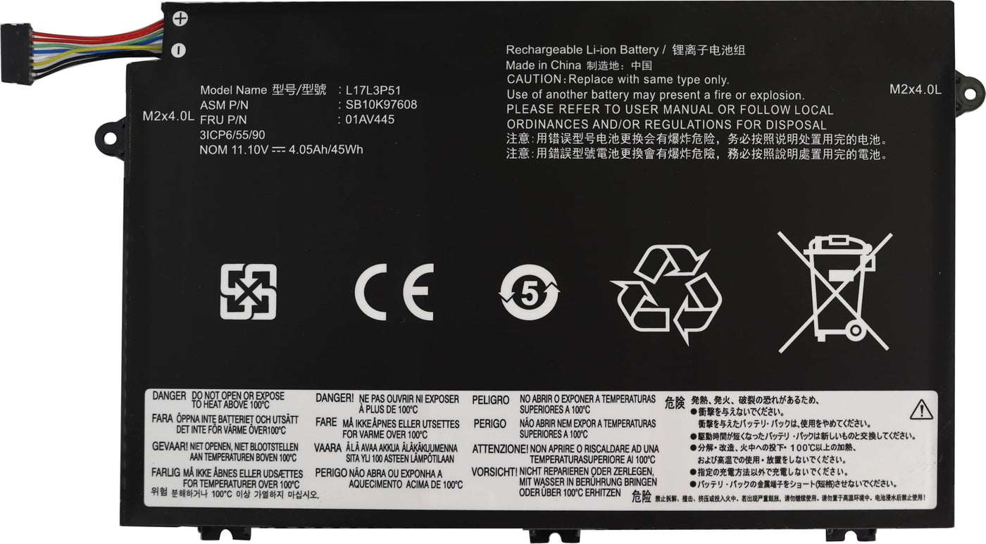 Compatible Part Numbers: 01Av445 01Av446 01Av447 01Av448 L17L3P51 L17M3P51 L17M3P52 L17C3P51Sb10K97606 Sb10K97607 Sb10K97608 Sb10K97609 5B10W13887 5B10W13888 5B10W13889 5B10W13890 Applicable Laptop Model: Thinkpad E480 Series - Type 20Kq, 20Kn Thinkpad E485 Series - Type 20Ku Thinkpad E490 Series - Type 20N8, 20N9 Thinkpad E495 Series - Type 20Ne Thinkpad E580 Series - Type 20Ks Thinkpad E585 Series - Type 20Kv Thinkpad E590 Series - Type 20Nb Thinkpad E595 Series - Type 20Nf Thinkpad E14 Series - Type 20Ra, (Not Fit For Thinkpad E14 G3/ Thinkpad E14 Gen 2/Gen 3) Thinkpad E15 Series - Type 20Rd, 20Re (Not Fit For Thinkpad E15 G3/ E15 Gen 2/ E15 Gen 3) Thinkpad E14 1St Gen (2019) Series (Not 2Nd Gen 2020 & 3Rd Gen 2021 & 4Th Gen 2022) Thinkpad E15 1St Gen (2019) Series (Not 2Nd Gen 2020 & 3Rd Gen 2021 & 4Th Gen 2022) E41-50 Series E41-55 Series Note: For More Accrate, Please Check The Part Number Of Your Original Battery.