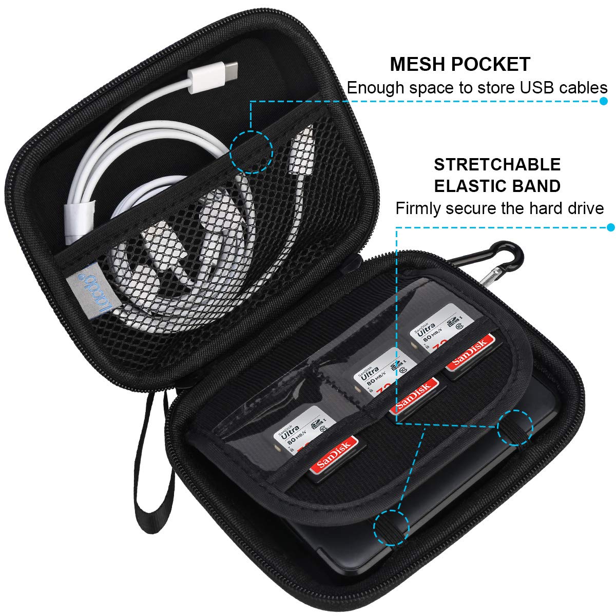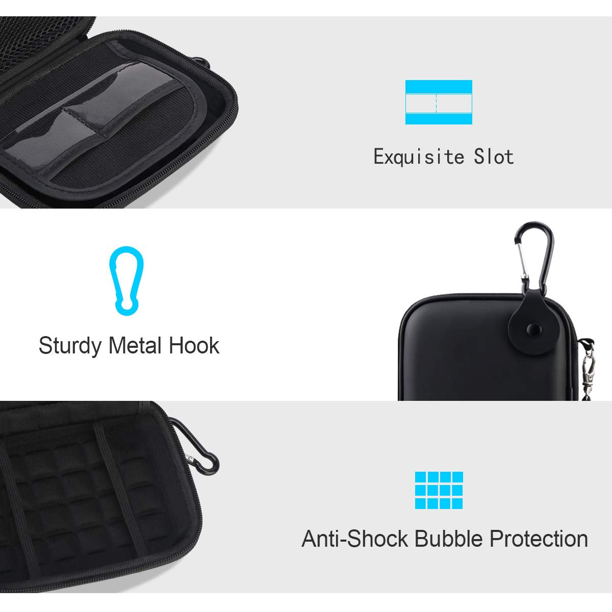 Compatible & Size - Fits Seagate Portable External Hard Drive / Seagate One Touch Hdd / Seagate Ultra Touch Hdd / Seagate Backup Plus Slim / Seagate Expansion / Western Digital Wd Elements / Wd My Passport / Toshiba Canvio Basics Portable External Hard Drive Hdd 1Tb 2Tb 4Tb 5Tb 6Tb Usb 3.0. Exterior Size: 5.6 X 4.4 X 1.5 Inch & Interior Size: 4.8 X 3.5 X 1.0 Inch. | Shockproof - Extra Soft, The Anti-Static, Shock Absorbing, The Product Can Effectively Absorb Impacts. Reduce Damages Caused By Accidentally Bumping, Protects Your Hard Drive From Bumps, Scratches, And Dents. | Water Repellent - Made Of Waterproof Pu Material, Which Obstructs Water And Vapor Effectively. Don'T Worry About Getting Your Hard Drive And Accessories Wet From Splashing Water Or Rain. | Enough Space - Enough Space To Store Usb Cables, Charge, Also Boasts Extra Plastic Slots To Place Sd Cards Memory Cards Or Other Smaller But Essential Widgets. Devices Will Be Fastened With The Inside Security Strap That Can Hold Devices Tightly. | Easy To Carry - Hard Texture. Perfect With Lanyard And Metal Hook, You Can Just Carrying The Lanyard Or Use The Metal Hook Matches Lanyard Fixed Case On Your Backpack, Makes It Easy To Carry For Travelling.
