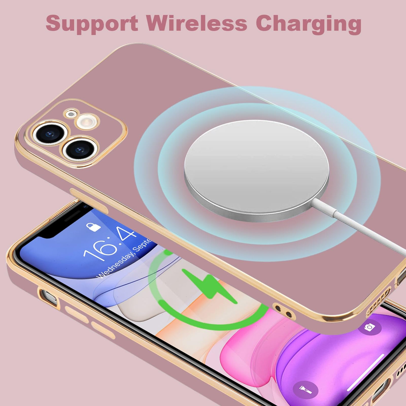 Lafunda Compatible For Iphone 11 Case, Luxury Cute Plating Case For Women Girls Electroplated Golden Edge Shockproof Tpu Bumper