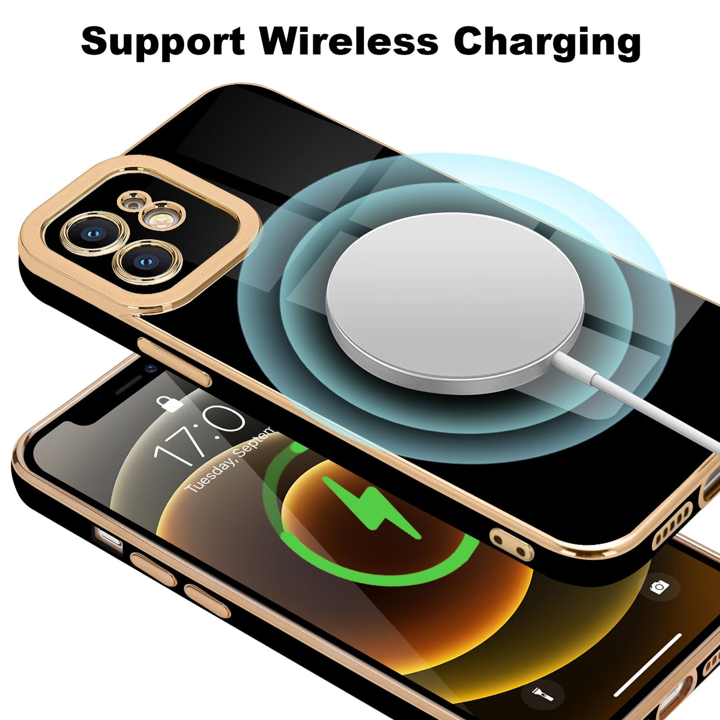 Lafunda Compatible With Iphone 12 Case, Luxury Plating Cases For Women Girls Cute Electroplated Golden Edge Shockproof Tpu Bumpe