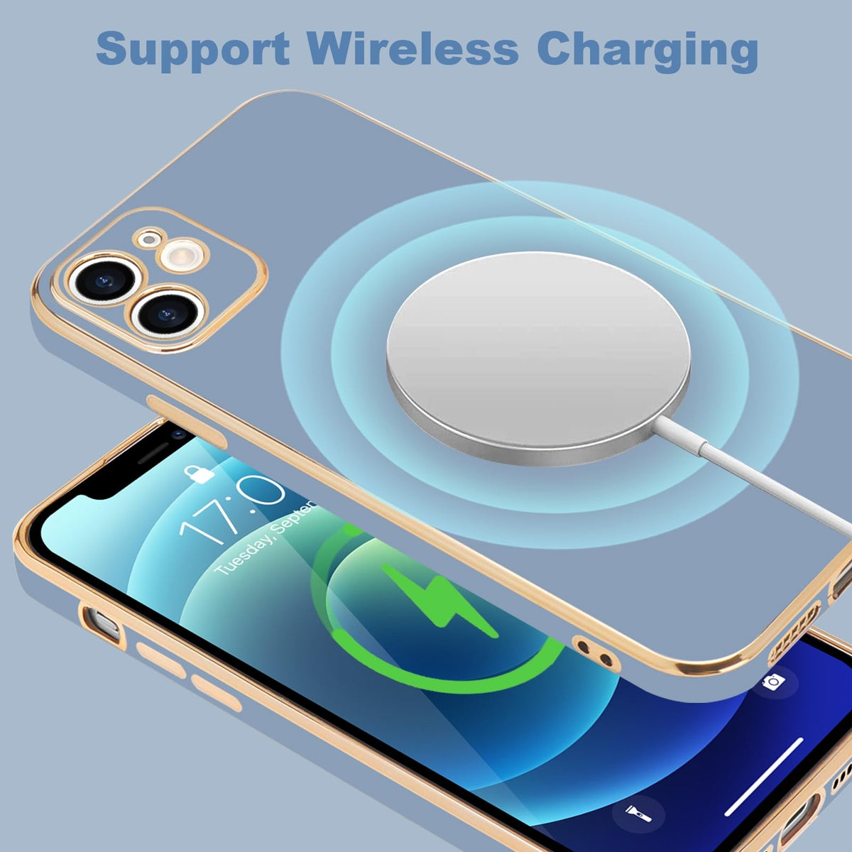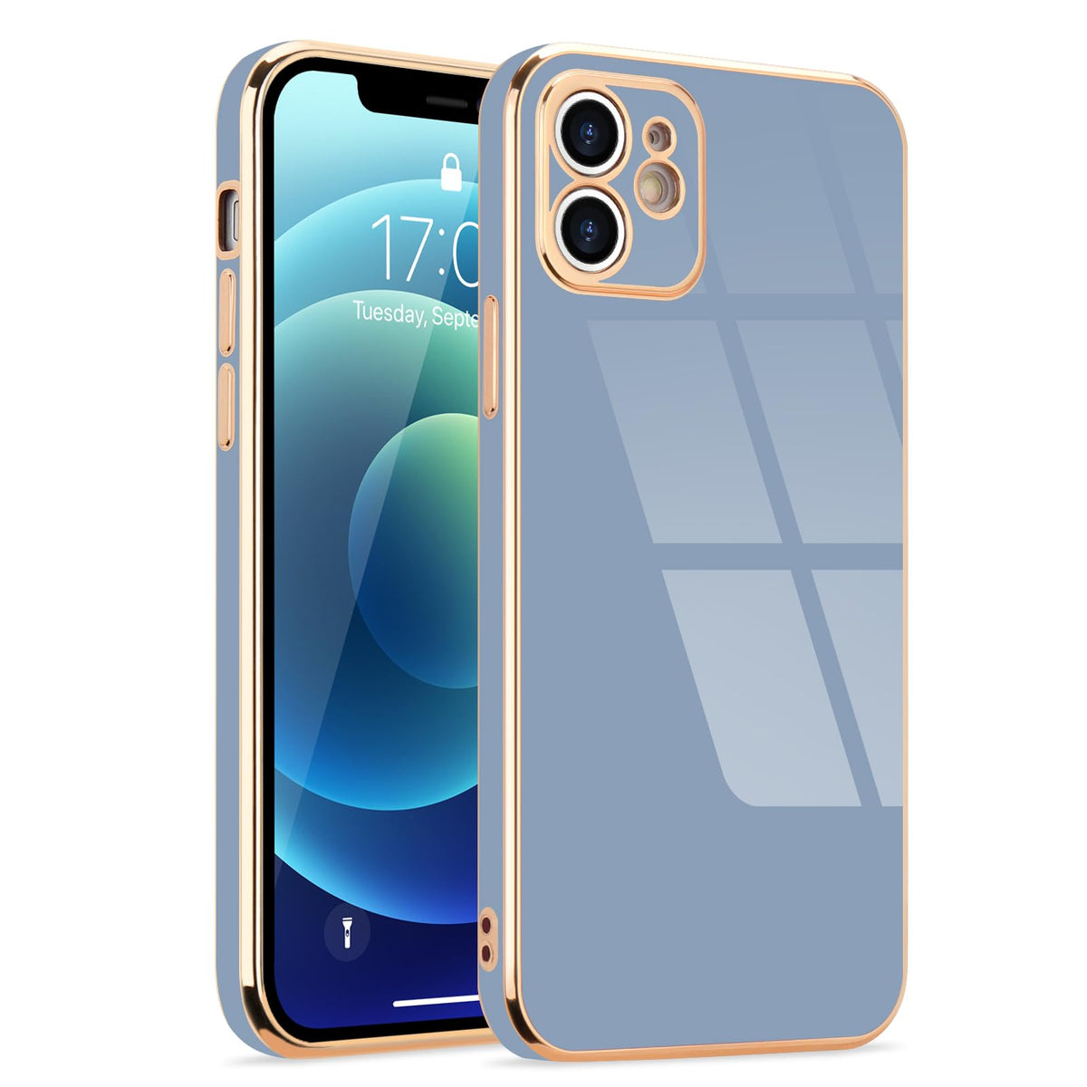 Lafunda Designed For Iphone 12 Case, Cute Luxury Plating Case For Women Girls Classy Electroplated Golden Edge Shockproof Tpu Bu
