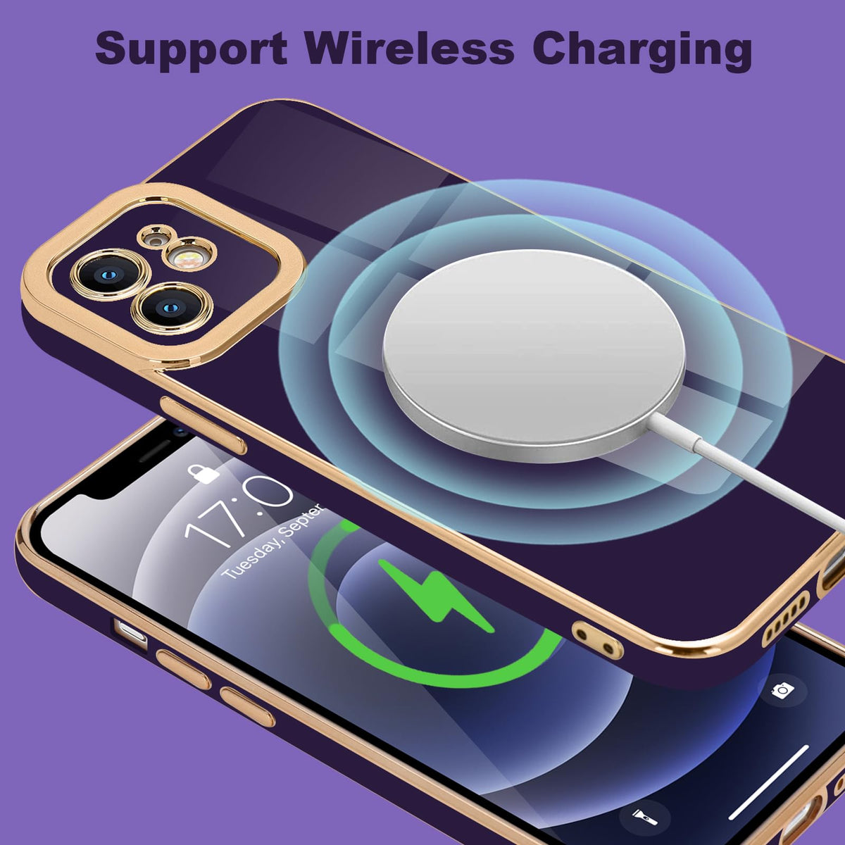 Lafunda Designed For Iphone 12 Case Cute, Luxury Plating Case For Women Girls Elegant Gold Edge Soft Tpu Bumper Cover With Camer