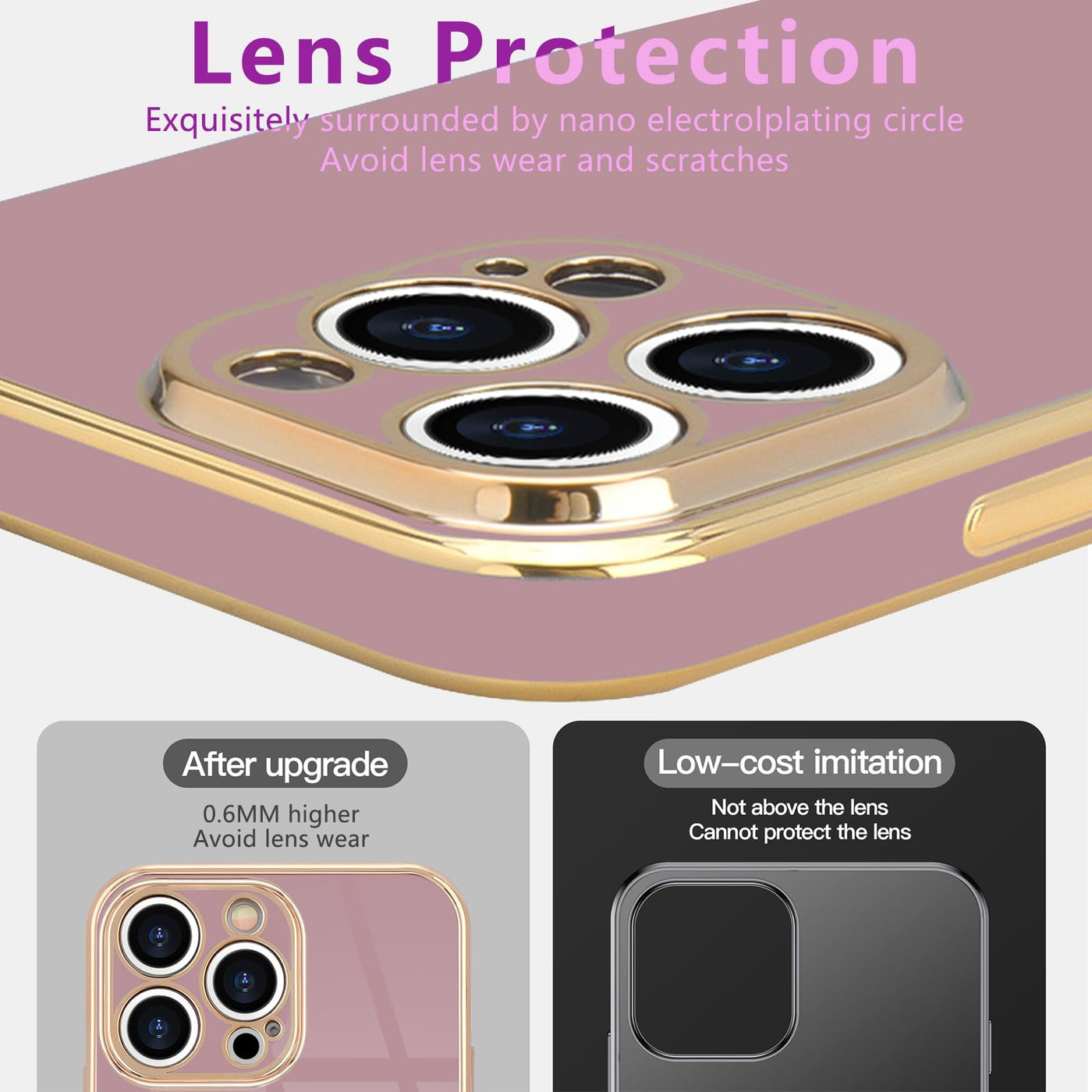 Lafunda Designed For Iphone 12 Pro Max Case, Cute Luxury Electroplated Case For Women Girls Golden Edge Shockproof Tpu Bumper Co