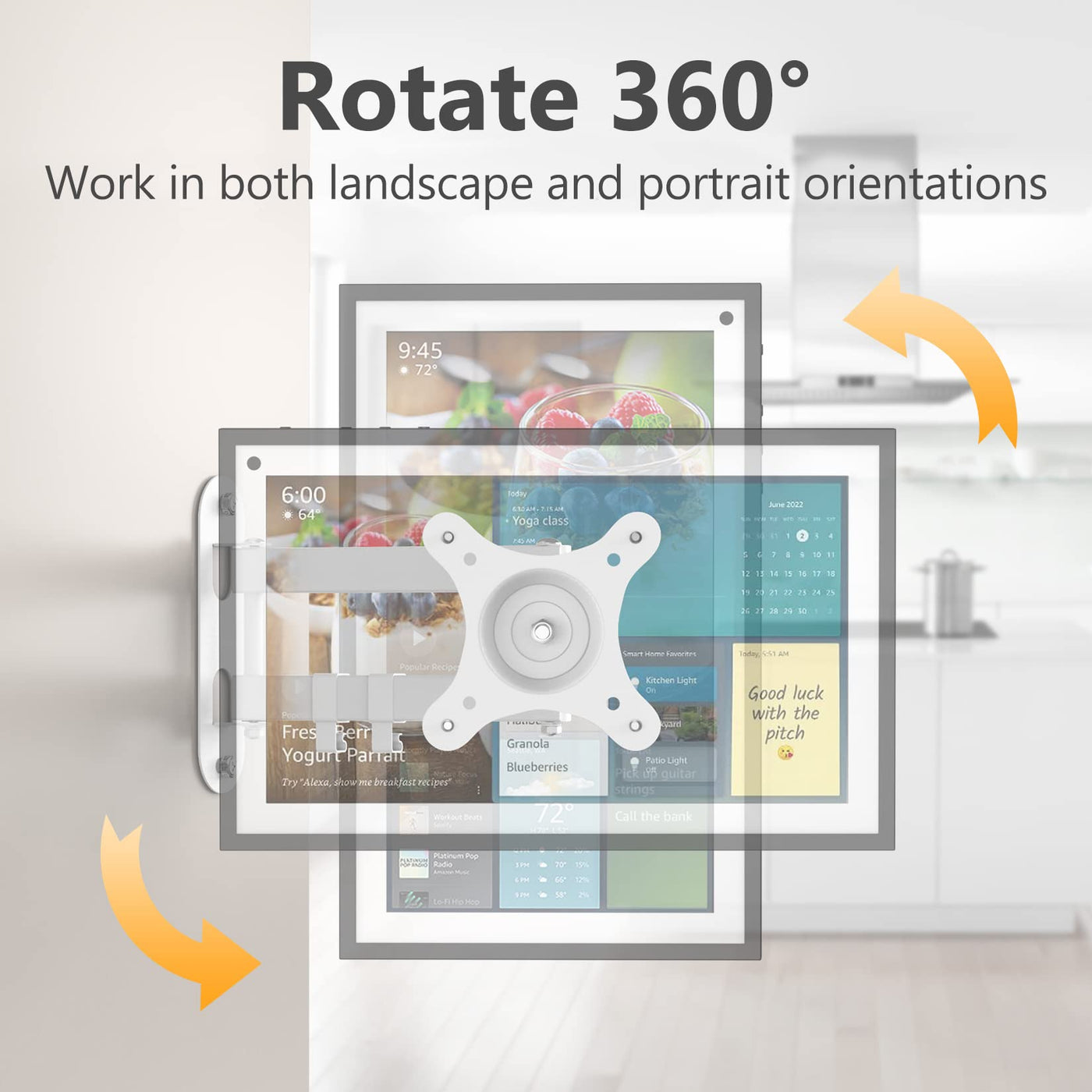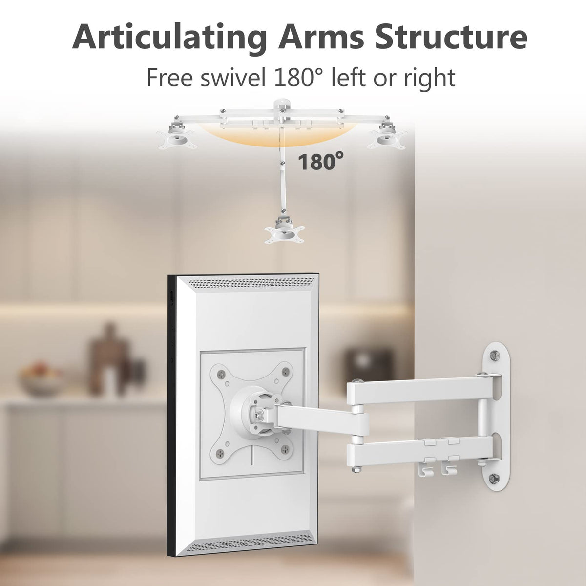 White Echo Show 15 Mount On Wall--Rotate 360/Tilt 270/Swivel 180. Vesa Plate 75X75Mm And 100X100Mm. Extend Up To 16.7'' And Fold In 3'' To Save Space. Box Includes 1 * White Wall Mount Bracket, Mounting Hardware Kits, User Manual.