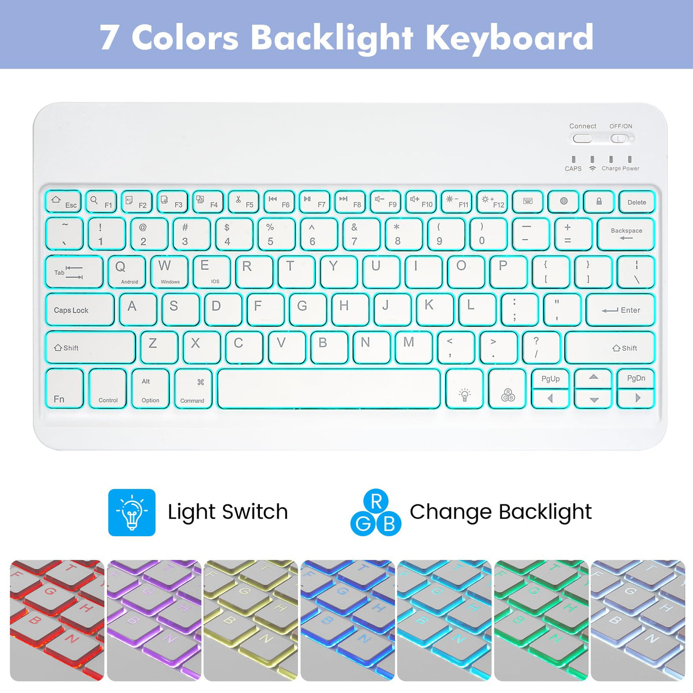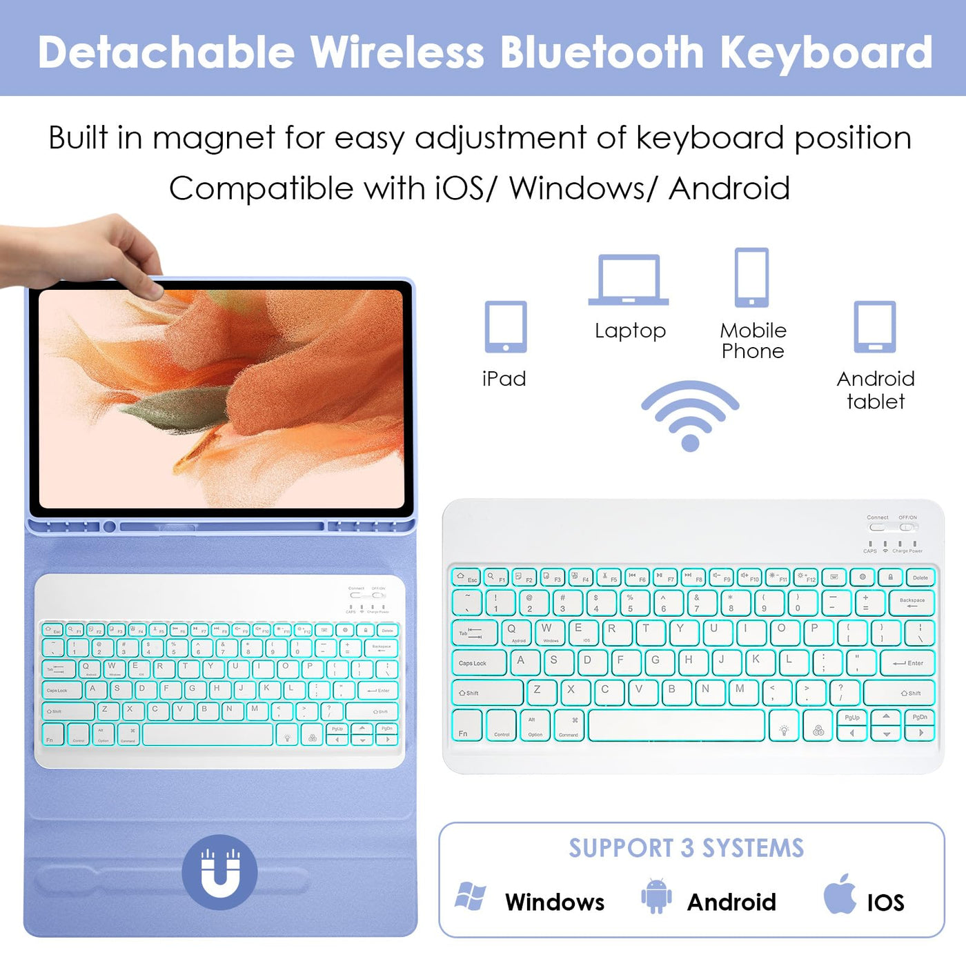 Keyboard Case For Samsung Galaxy Tab S7 Plus/S7 Fe/S8 Plus/S9 Plus/S9 Fe Plus, 12.4'' Advantages Of Our Samsung Keyboard Case: 1. Ultra Slim Magnetic Detachable Wireless Keyboard Design Is Convenient For Carrying And Using. 2. With The Automatic Wake-Up And Sleep Function, The Samsung Keyboard Can Work With Other Ios, Android, And Windows Devices. 3. The Special Function Keys, Like Sleep/Lock/Slide Show/Home/Volume, Provide You With A Good Typing Experience. 4. With An Adjustable Stand, You Can Find The Angle In Landscape Mode Just Right For You. How To Connect Samsung Keyboard To Tablet? 1. Turn On The Keyboard And Press The ''Connect'' Button. 2. When The Led Light Flashes, The Bluetooth Of The Keyboard Is Opened.&Nbsp; 3. Select The ''Bluetooth Keyboard'' For Pairing. 4. The Bluetooth Will Be Connected Automatically. [Note: Please Check The Samsung Back Model Before Purchasing.]&Nbsp;&Nbsp; This Samsung Keyboard Is Compatible With: Samsung Galaxy Tab S7 Plus/S7 Fe/S8 Plus/S9 Plus/S9 Fe Plus: Samsung Galaxy Tab S8+ 12.4'''' 2022 (Sm-X800/X806), Samsung Galaxy Tab S7 Fe 12.4''''2021(Sm-T730/T733/T735/T736/T738) Samsung Galaxy Tab S7 Plus 12.4'''' 2020 (Sm-T970/T975/T976).&Nbsp; Tab S9 Fe+ 12.4'' 2023(Sm-X610, Sm-X616B) Tab S9 Plus 12.4'' 2023(Model:Sm-X810/Sm-X816B/Sm-X818U) [Note: Please Check The Samsung Back Model Before Purchasing.] Packing List: 1 * 7 Colors Backlit Keyboard Case For Samsung Tab S7 Plus/S7 Fe/S8 Plus/S9 Plus/S9 Fe Plus 12.4'' (Samsung Not Included) 1 * Usb Charging Cable (Only For The Keyboard, Not For Samsung) 1 * User Manual&Nbsp; &Nbsp; &Nbsp;