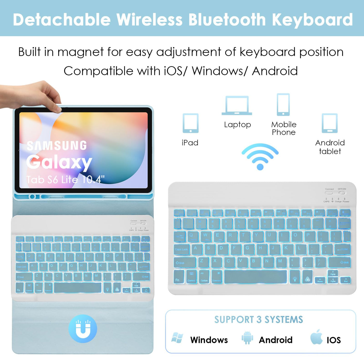 Keyboard Case With Mouse For Samsung Tab S6 Lite 10.4 Advantage Of Our Samsung Keyboard Case With Mouse: 1. Utral Slim Magnetic Detachable Wireless Keyboard Design Is Convenient For Carrying And Using. 2. With The Automatic Wake-Up And Sleep Function, The Samsung Keyboard Can Work With Other Ios, Android, And Windows Devices. 3. The Special Function Keys, Like Sleep/Lock/Slide Show/Home/Volume, Provide You With A Good Typing Experience. 4. With An Adjustable Stand, You Can Find The Angle In Landscape Mode Just Right For You. How To Connect Samsung Keyboard To Tablet? 1. Turn On The Keyboard And Press The ''Connect'' Button. 2. When The Led Light Flashes, The Bluetooth Of The Keyboard Is Opened.&Nbsp; 3. Select The ''''''''Bluetooth Keyboard'''''''' For Pairing. 4. The Bluetooth Will Be Connected Automatically. [Note: Please Check The Samsung Back Model Before Purchasing.]&Nbsp;&Nbsp; This Samsung Keyboard Is Compatible With: Tab S6 Lite 10.4 2020/2022(Sm-P610/P615/P613/P619)Us Layout [Note: Please Check The Samsung Back Model Before Purchasing.] Packing List: 1 * Keyboard Case With Mouse For&Nbsp;Samsung Tab S6 Lite 10.4Inch&Nbsp; (Samsung Not Included) 1 * Usb Charging Cable (Only For The Keyboard, Not For Samsung) 1 * User Manual ''