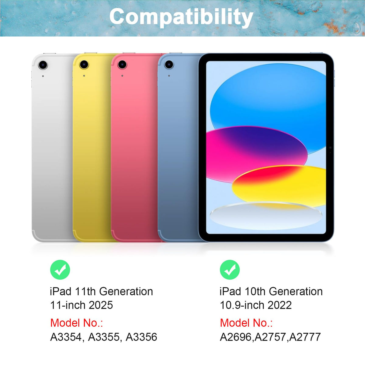 Lama Keyboard Case With Mouse For Ipad 10Th Generation 10.9 Inch 2022 And 11Th Generation 11 Inch 2025 This Keyboard Case With Mouse Compatible With: 10.9 Inch:Ipad 10Th Generation 10.9 2022 (Model: A2696/A2757/A2777) 11 Inch Ipad 11Th (A16) Generation 2025(Model: A3354/A3355/A3356) Advantage Of Keyboard Case With Mouse: 1. Utral Slim Magnetic Detachable Wireless Keyboard Design Is Convenient For Carrying And Using. 2. With The Automatically Wake Up And Sleep Function, The Keyboard Case Can Work With Other Ios, Android, And Windows Devices. 3. The Special Function Keys, Like Sleep/Lock/Slide Show/Home/Volume, Provide You With A Good Typing Experience. 4. With An Adjustable Stand, You Can Find The Angle In Landscape Mode Just Right For You. How To Connect Keyboard To Ipad Tablet? 1. Power On Keyboard And Open Bluetooth In Tablet Settings, Long Press The Connect Button (Indicator Will Keep Twinkle)On The Keyboard 2. Search For Bluetooth Keyboard On Tablet S Bluetooth Interface,Then Click Connect . 3. Mouse: Switch Mouse To Bluetooth Symbol,And Seacrch The Bt5.2 Mouse On Tablet, Finished Connected. 4. This Mouse Also Can Used With Computer Or Laptop, Switch The Power Button To 2.4G And Plug The Usb Receiver In Deivice. [Note: Please Check The Ipad Back Model Before Purchasing.] Packing List: 1 * Case For Ipad 11Th 2025/10Th 2022 Gen (Ipad Not Included) 1 * Keyboard 1 *Mouse 1 * Usb Charging Cable (Only For The Keyboard, Not For Ipad) 1 * User Manual