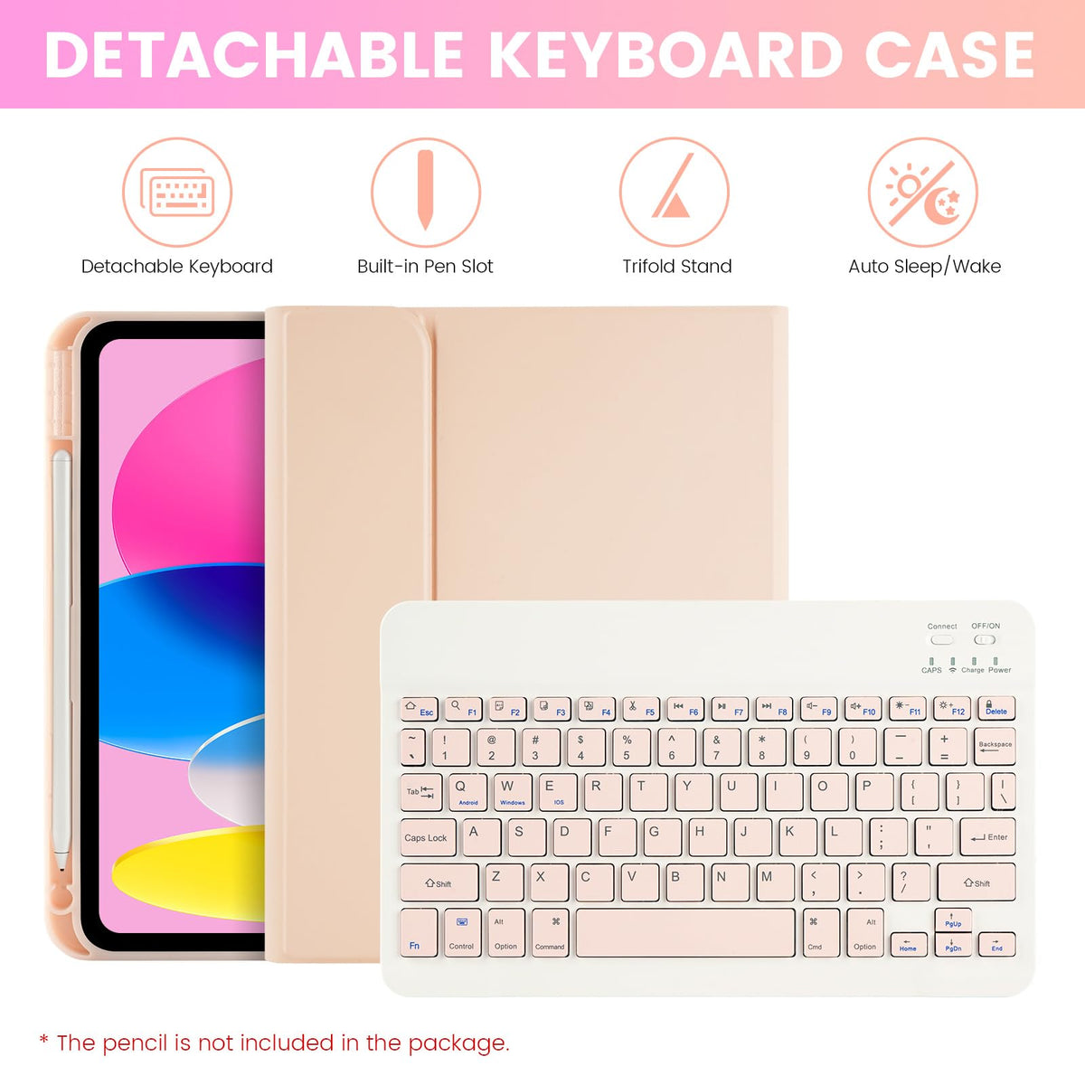 Lama Slim Detachable Keyboard Case For Ipad 10Th Generation 10.9'' 2022 (A2696/A2757/A2777), Wireless Keyboard Case With Pencil