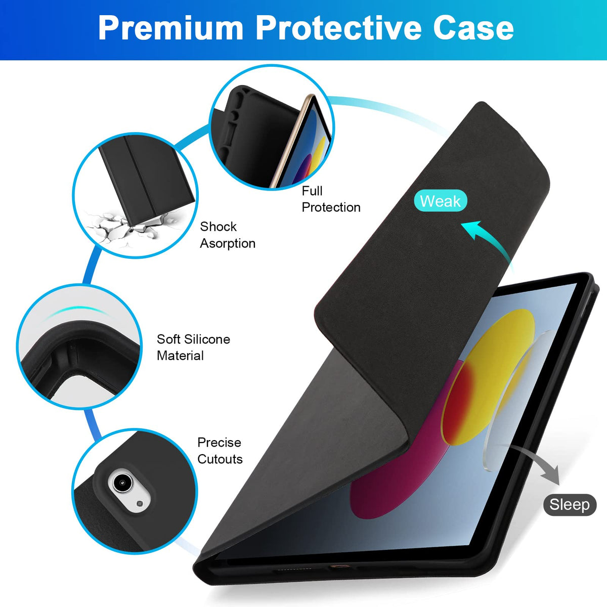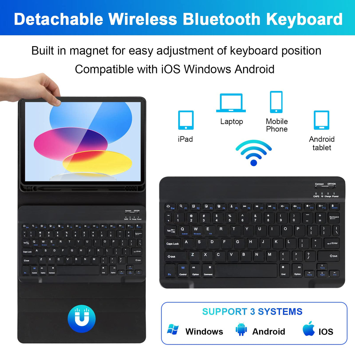 Keyboard Case For Ipad 10Th Generation Advantage Of Lama Keyboard Case: 1. Utral Slim Magnetic Detachable Wireless Keyboard Design Is Convenient For Carrying And Using. 2. With The Automatically Wake Up And Sleep Function, The Keyboard Case Can Work With Other Ios, Android, And Windows Devices. 3. The Special Function Keys, Like Sleep/Lock/Slide Show/Home/Volume, Provide You With A Good Typing Experience. 4. With An Adjustable Stand, You Can Find The Angle In Landscape Mode Just Right For You. How To Connect Pad Keyboard To Tablet? 1. Turn On The Keyboard And Press The ''Connect'' Button. 2. When The Led Light Flashes, The Bluetooth Of The Keyboard Is Opened. 3. Select The ''Bluetooth Keyboard'' For Pairing. 4. The Bluetooth Will Be Connected Automatically. [Note: Please Check The Ipad Back Model Before Purchasing.] This Keyboard Case Compatible With: 10.9 Inch:Ipad 10Th Generation 10.9'' 2022 Release(A2696/A2757/A2777) [Note: Please Check The Ipad Back Model Before Purchasing.] Packing List: 1 * Keyboard Case For Ipad 10.9 Inch 10Th Gen (Ipad Not Included) 1 * Usb Charging Cable (Only For The Keyboard, Not For Ipad) 1 * User Manual